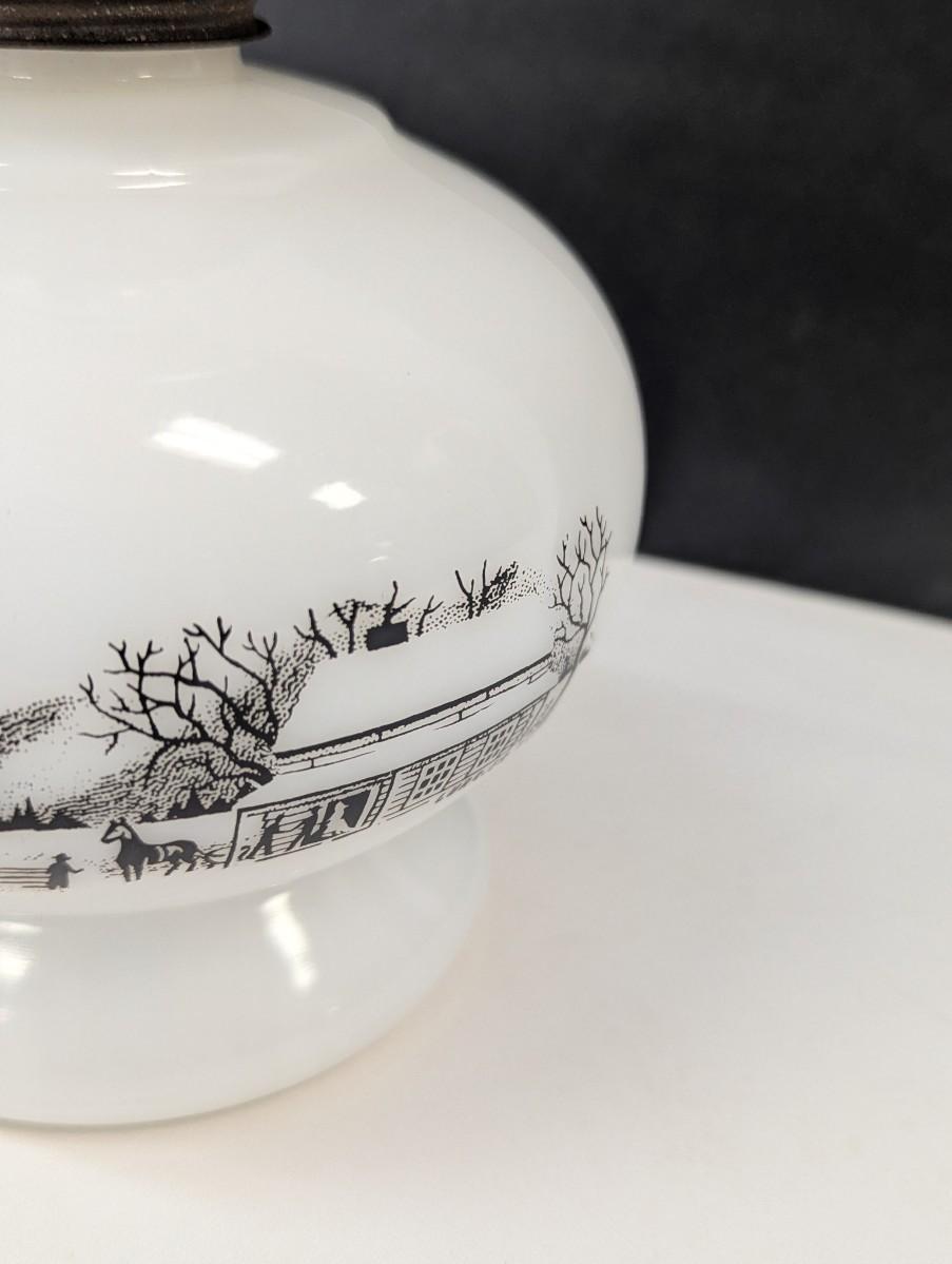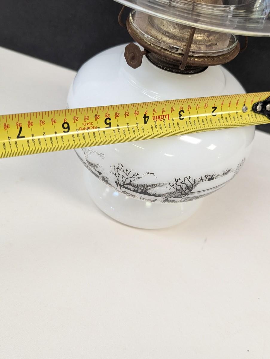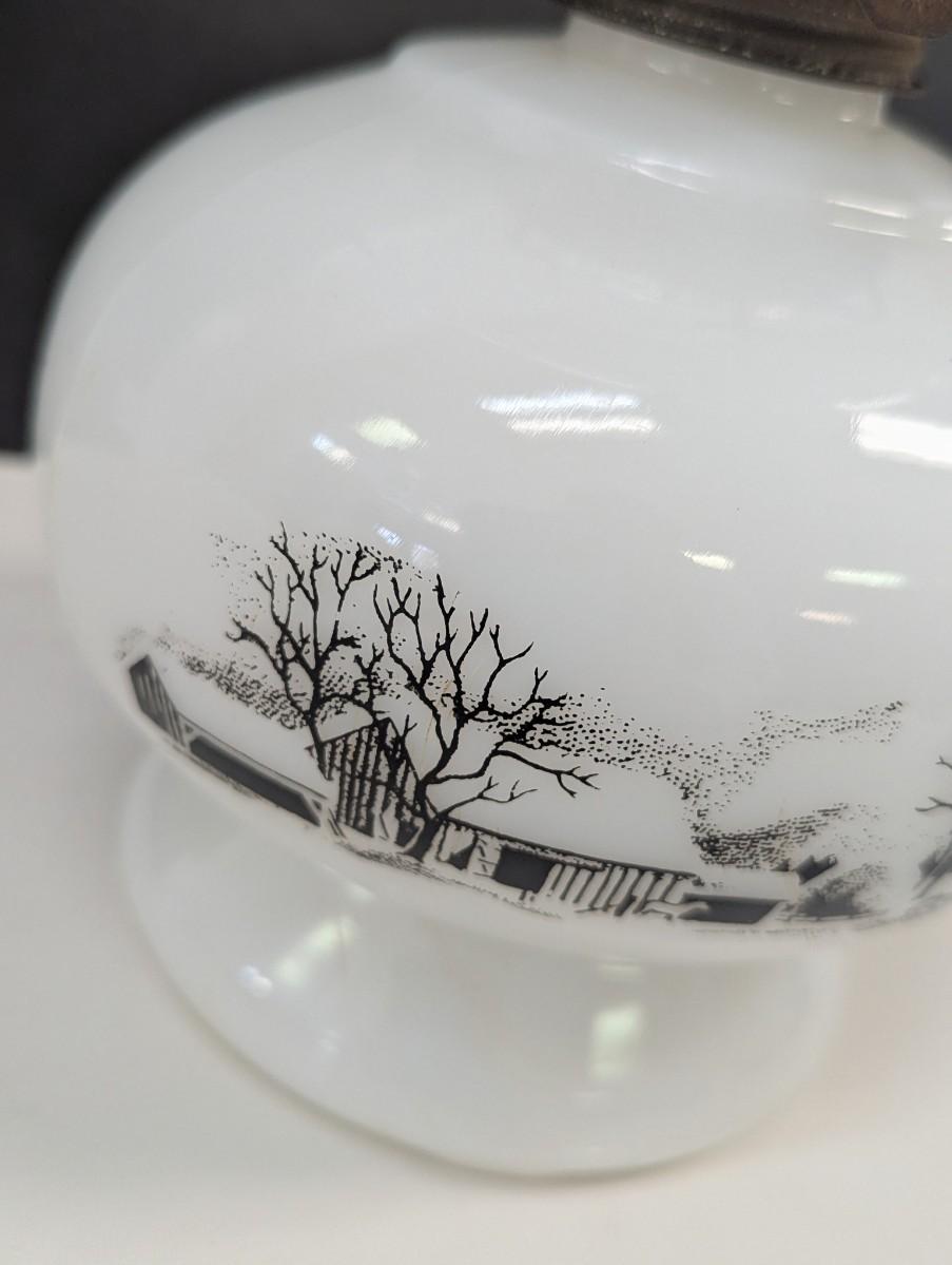 Vintage Oil Lamp Currier & Ives Milk Glass Base With Clear Glass Shade Choice 1