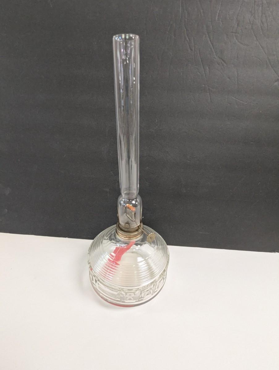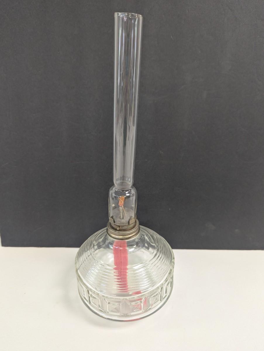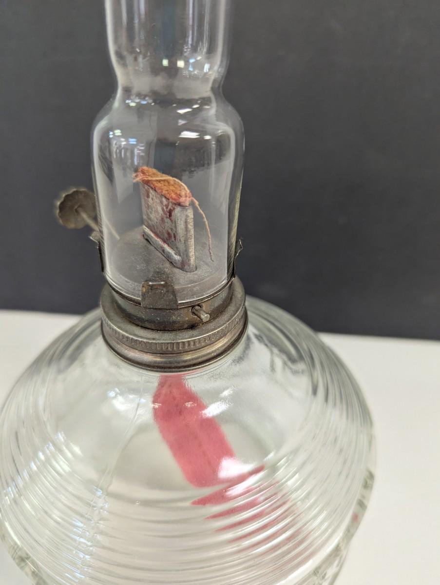 Vintage Oil Lamp Lamplight Farms Clear Glass With Thin Shade & Wick