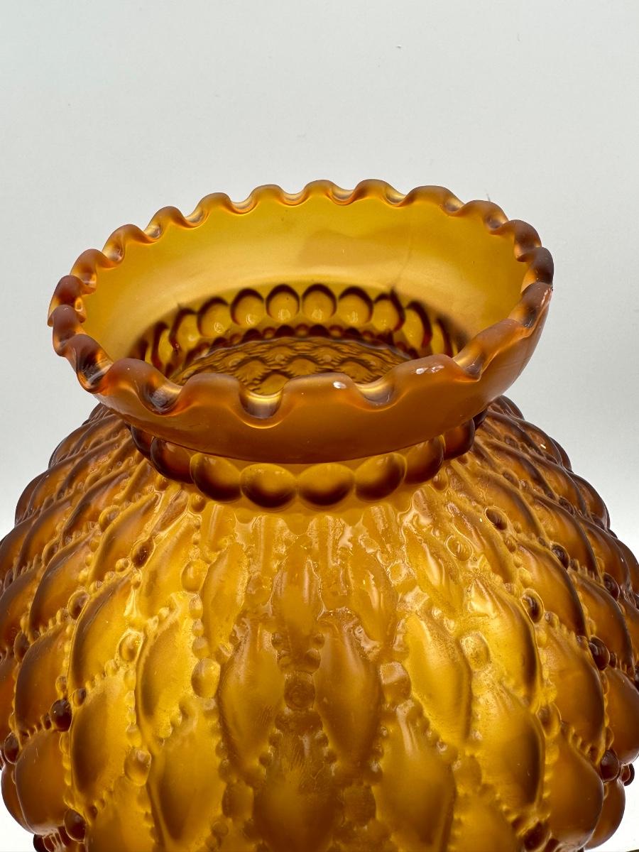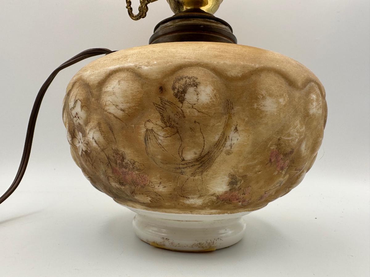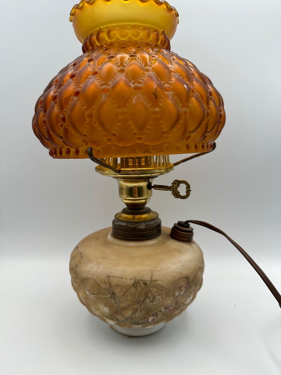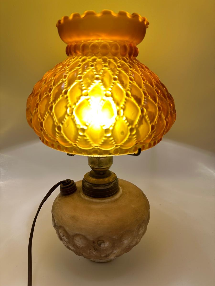 Antique Oil Lamp w/ Amber Glass Shade