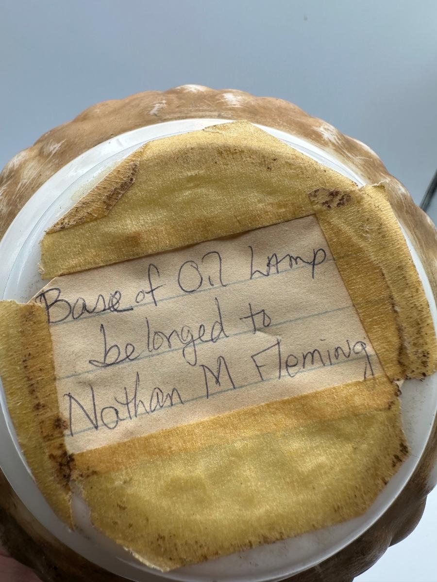 Base of oil lamp belonged to Nathan M. Fleming.