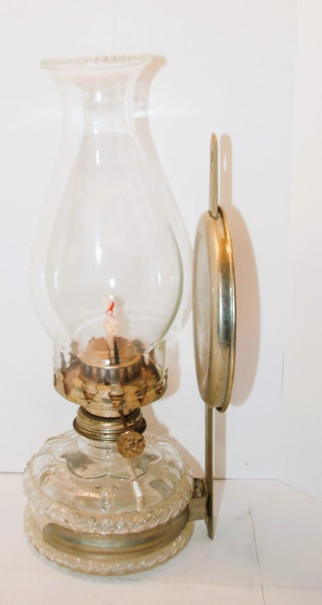 Vintage Oil Lamp with Chimney, Back Reflector and Wick 13" H