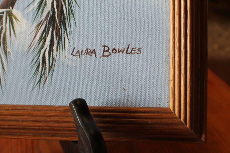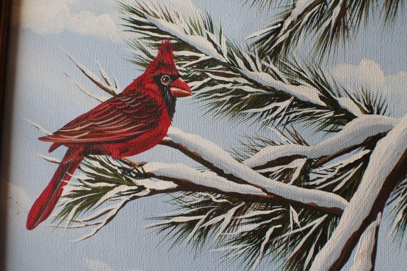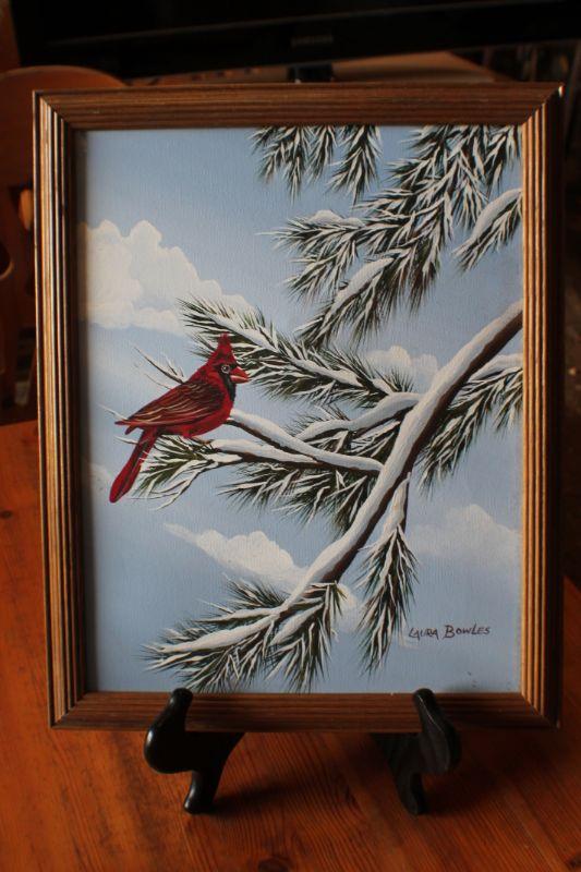 Lot #103: Vintage Oil Painting by Lara Bowles Red Bird Winter