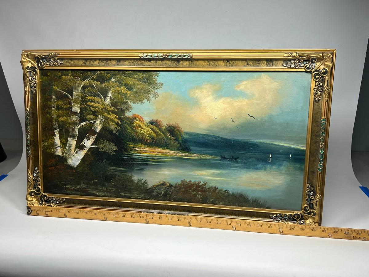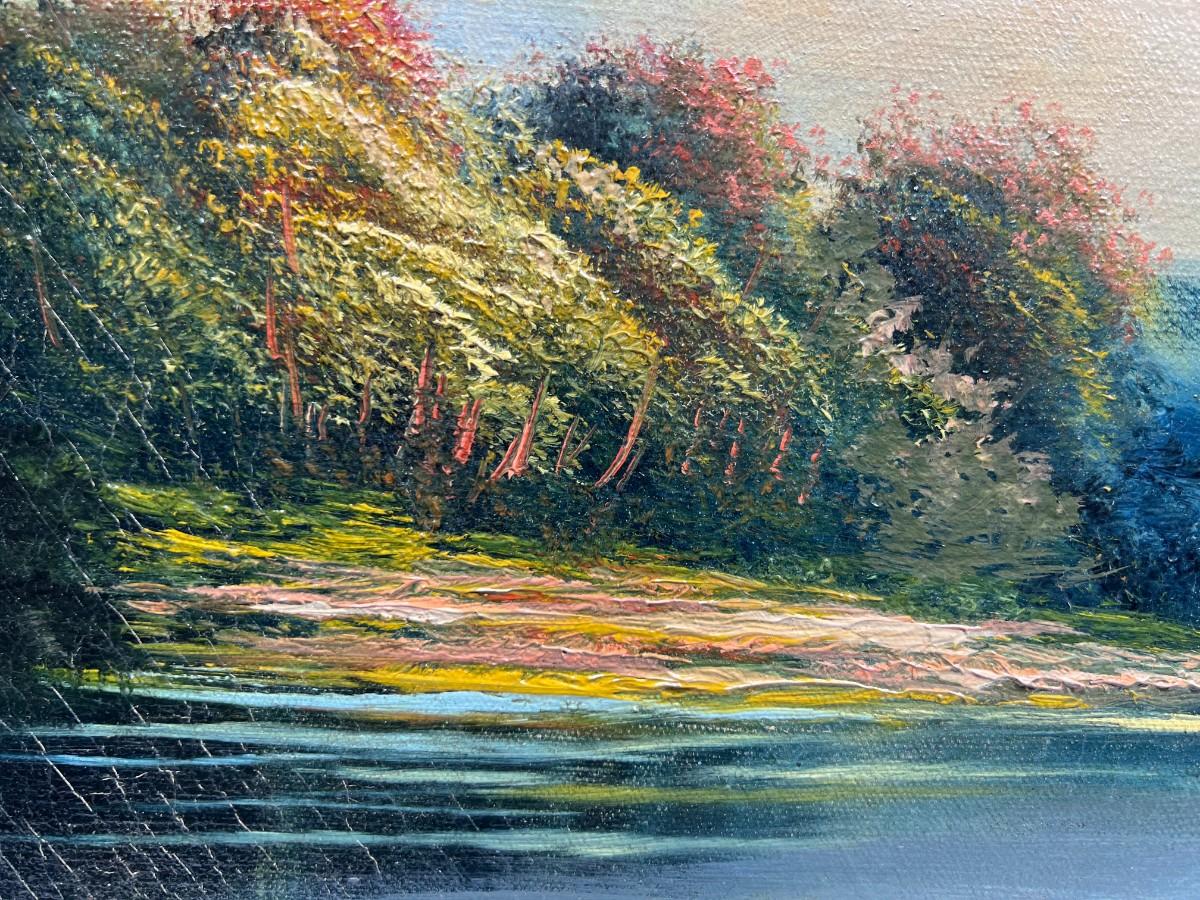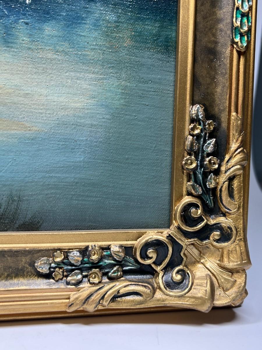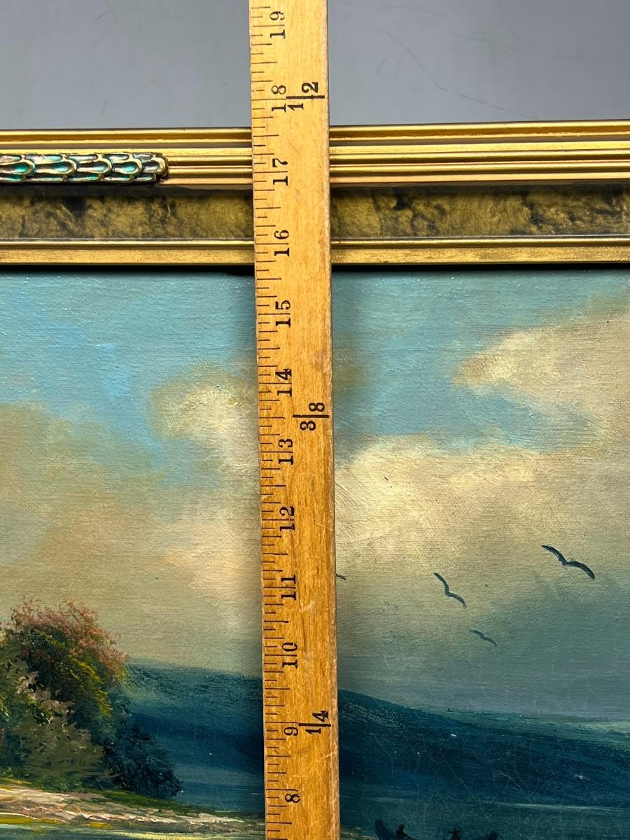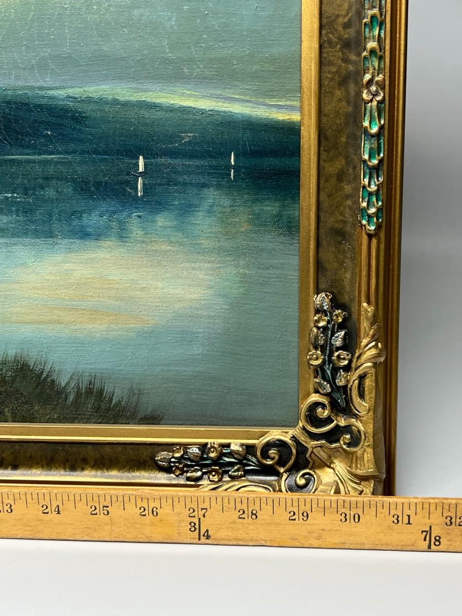 Vintage Oil Painting Impressionist Landscape Nature Coast Soft Scenery in Art Deco Style Frame
