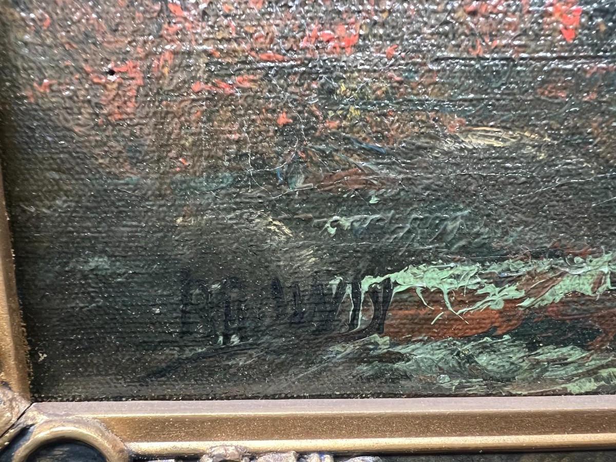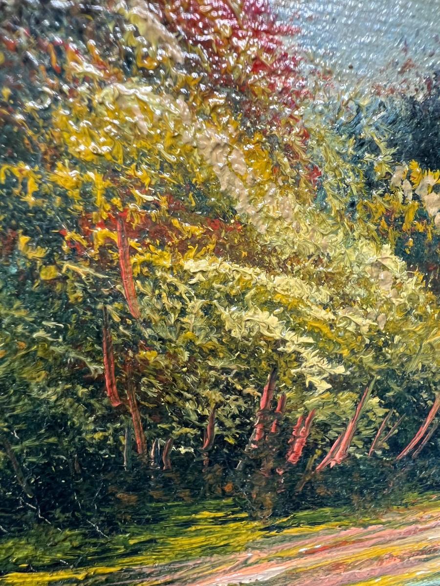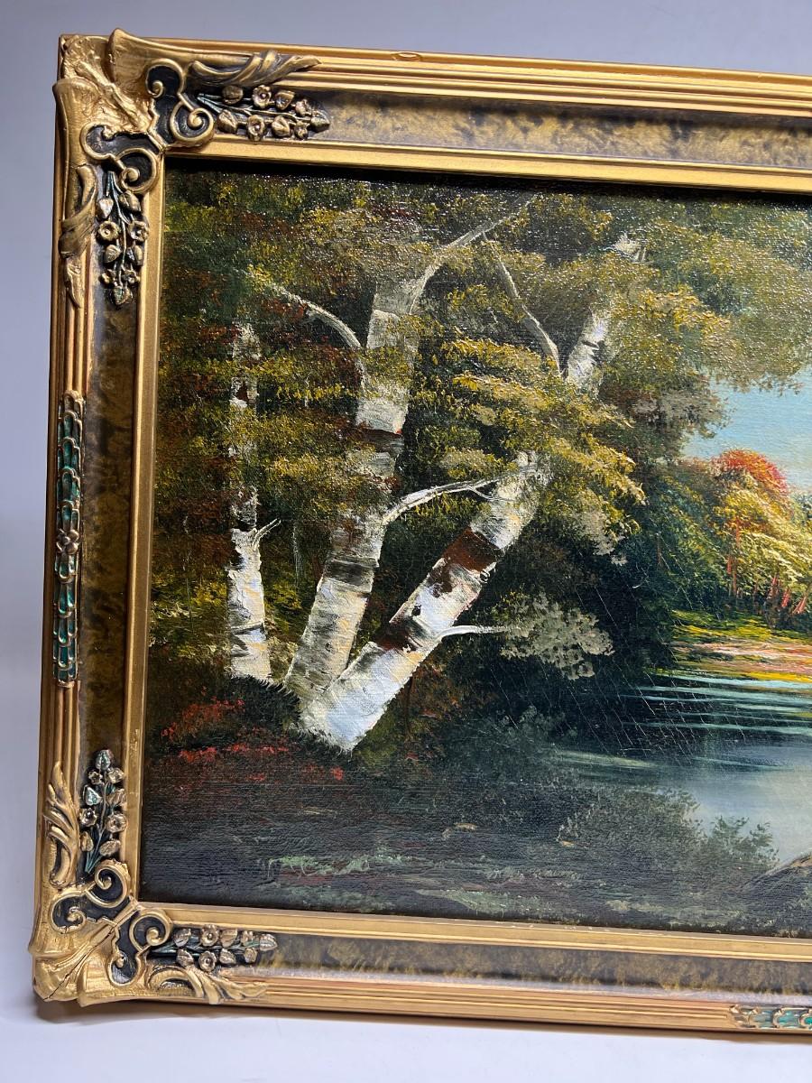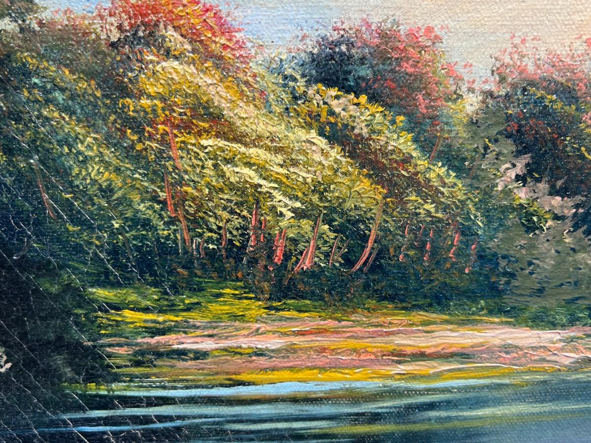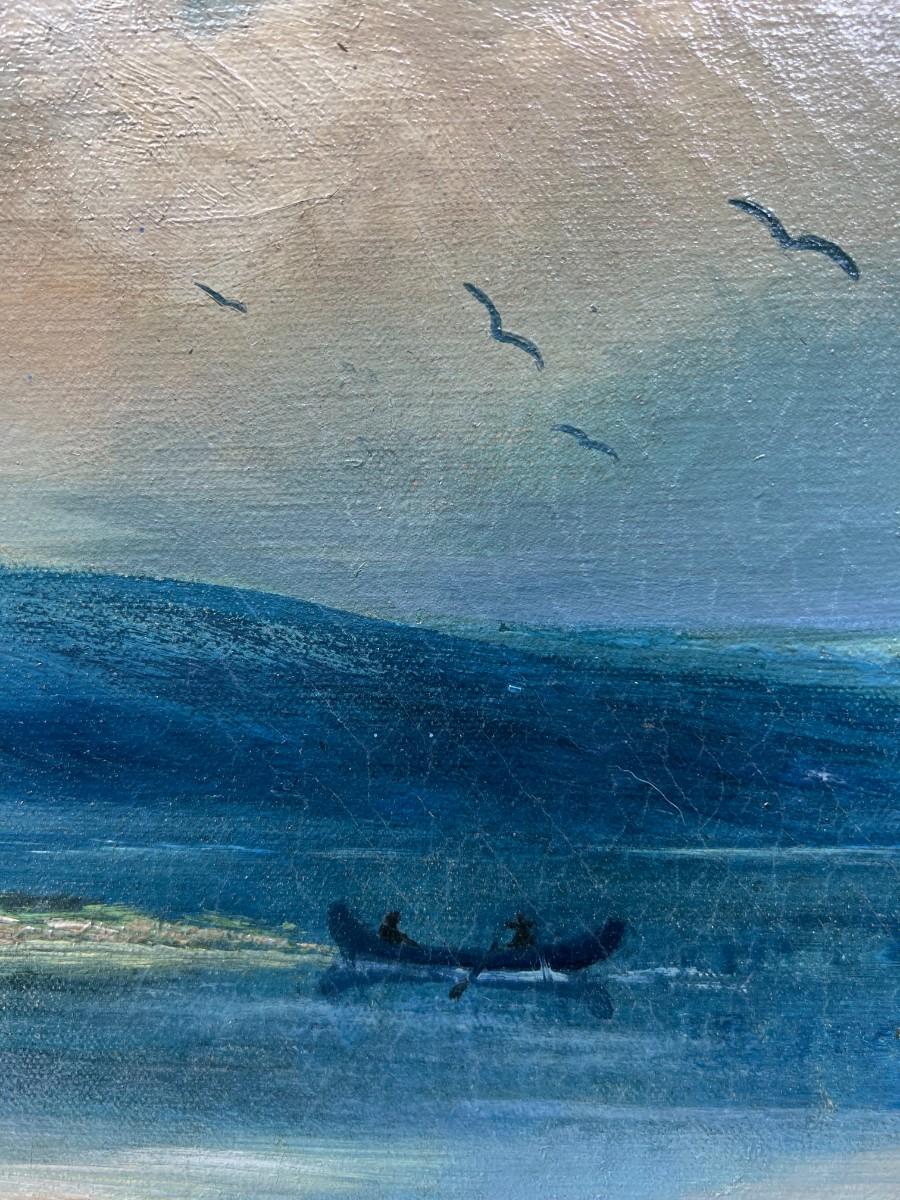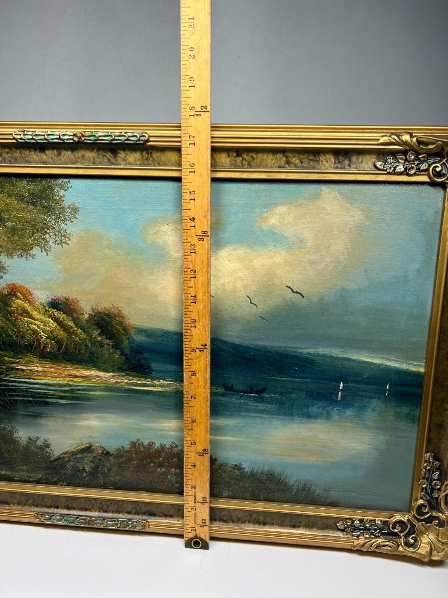 Vintage Oil Painting Impressionist Landscape Nature Coast Soft Scenery in Art Deco Style Frame