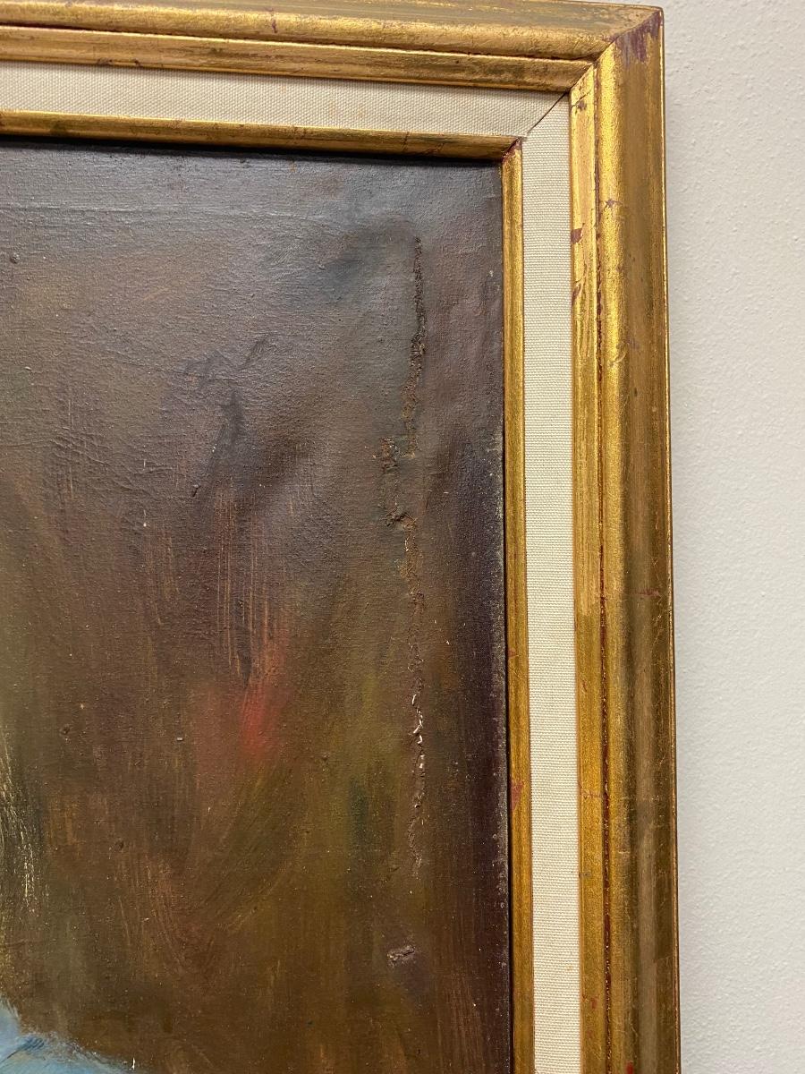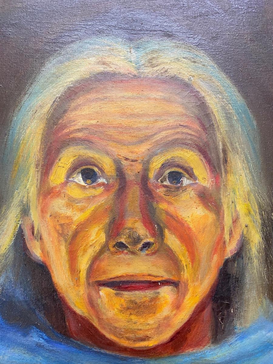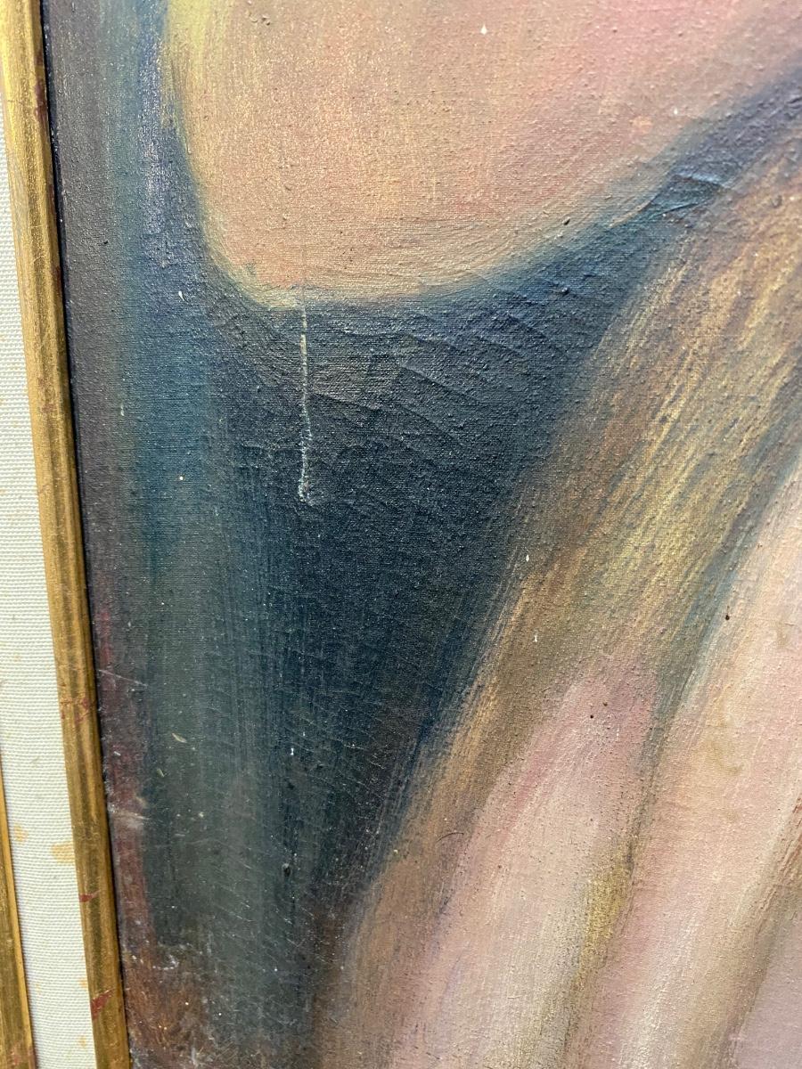 Vintage Oil Painting on Canvas White Haired Woman with Candle
