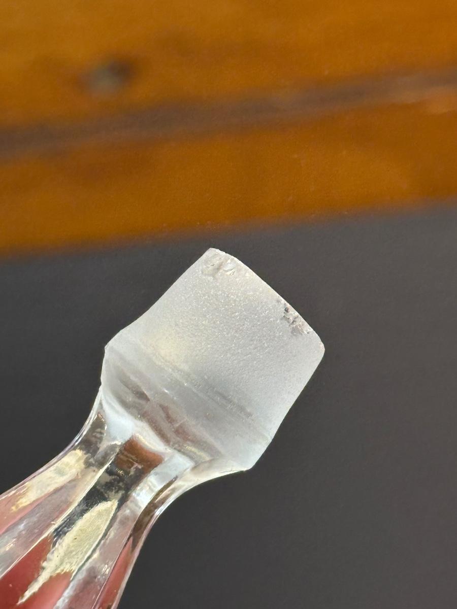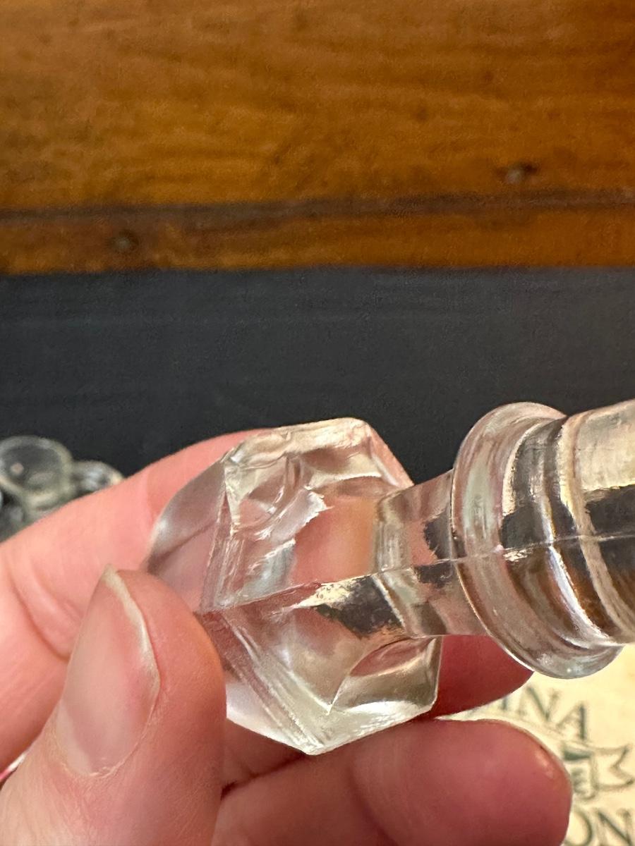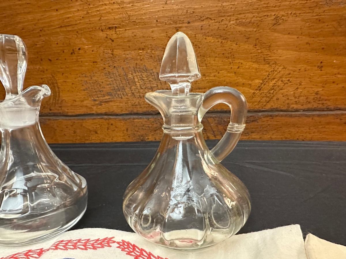 The decanters are beautiful and do have slight wear around the corks and rim. All items in vintage/used condition.