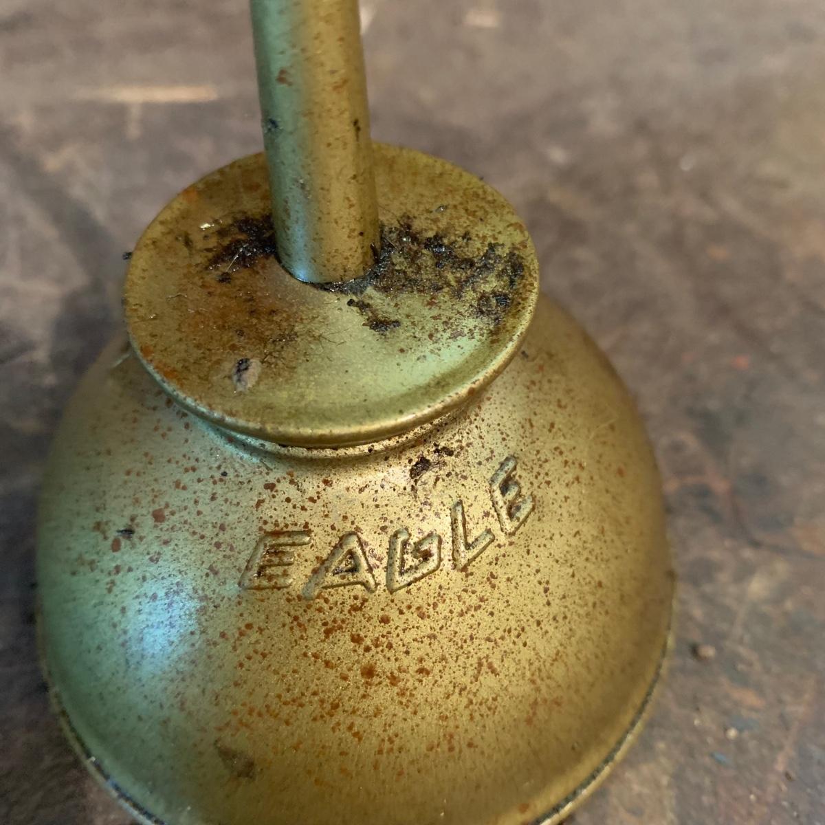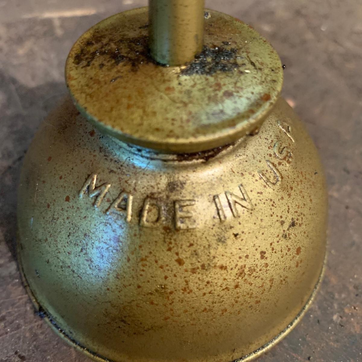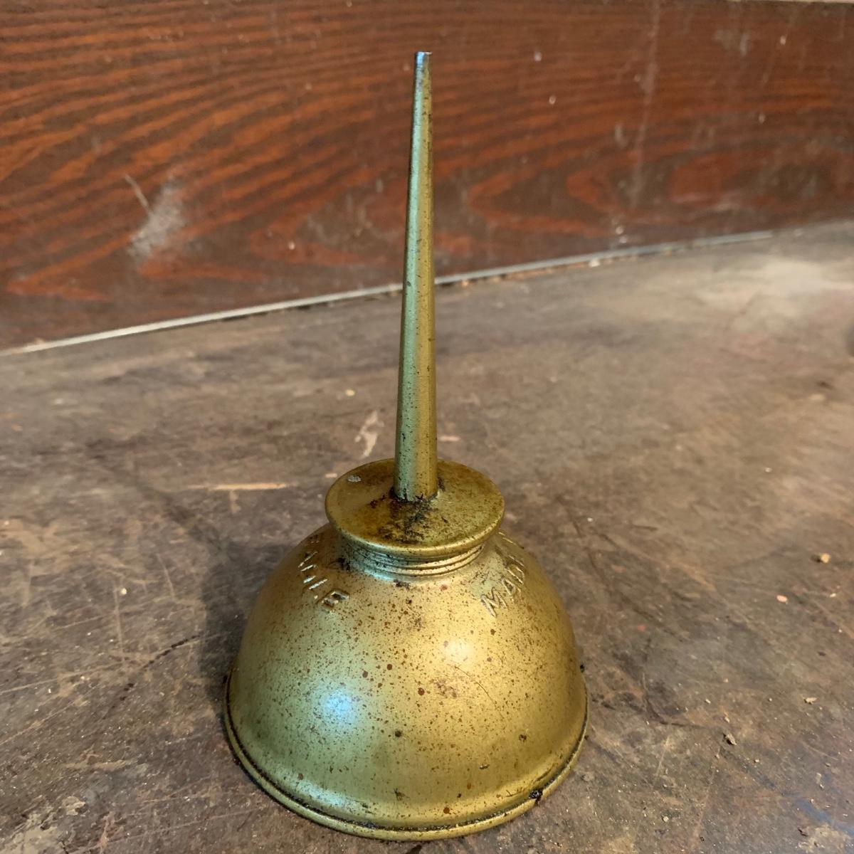 This lot contains three vintage metal oilers, a small metal funnel, and a 4 oz. can of Esso Handy Oil. There is liquid in the Esso can, but we cannot verify the contents. The largest oiler has a bendable neck. It measures approximately 3.5” in diameter and 9” tall. All items are a bit dusty and some are greasy as well from the oil. Local pick up only.
