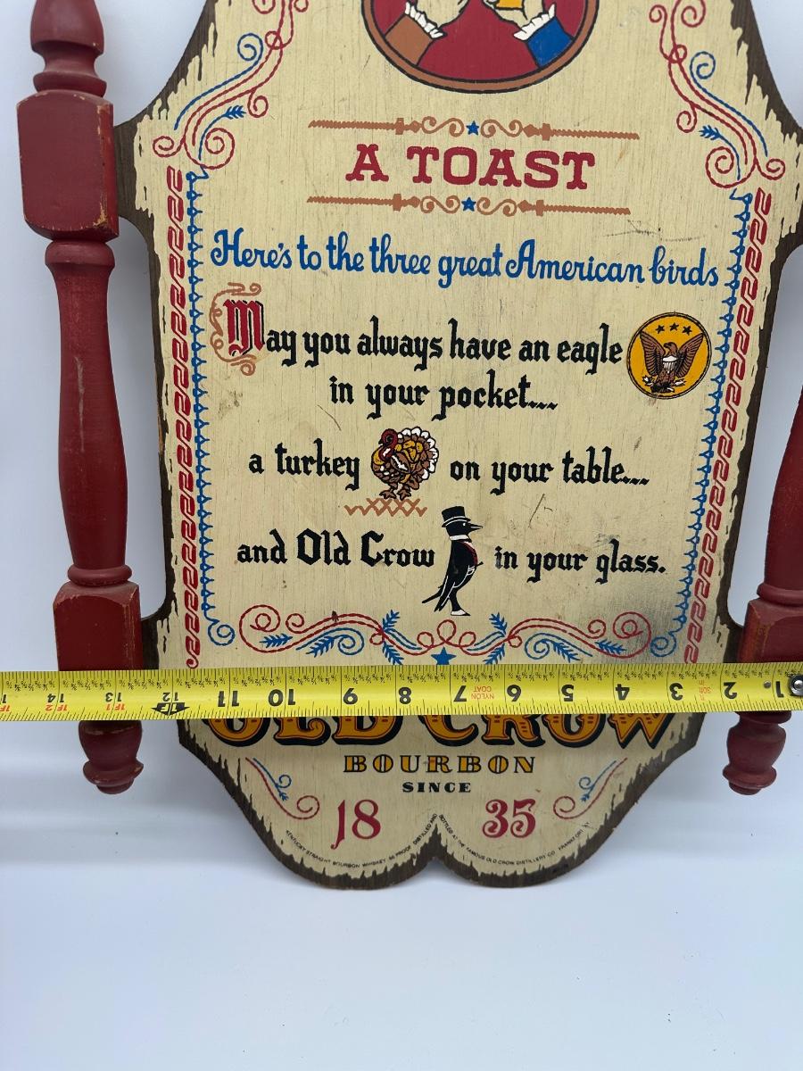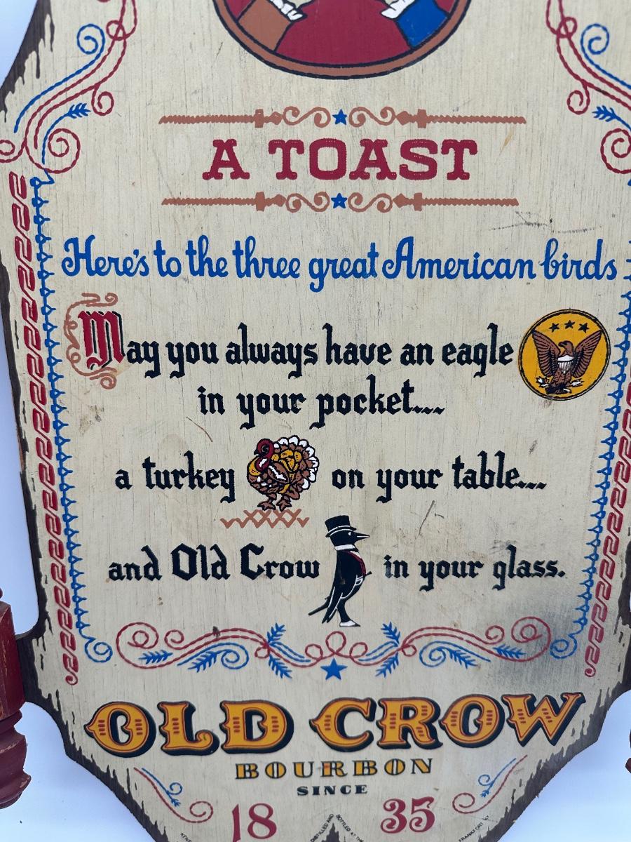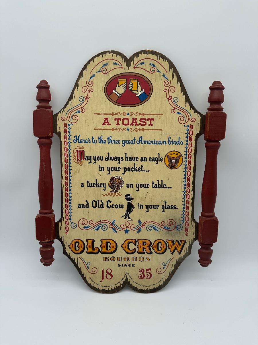 Vintage Old Crow Bourbon “A Toast” Wooden Wall Plaque