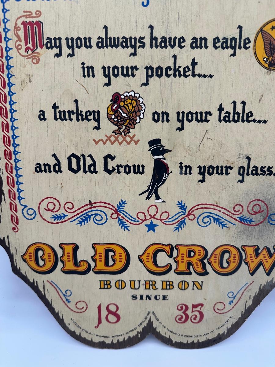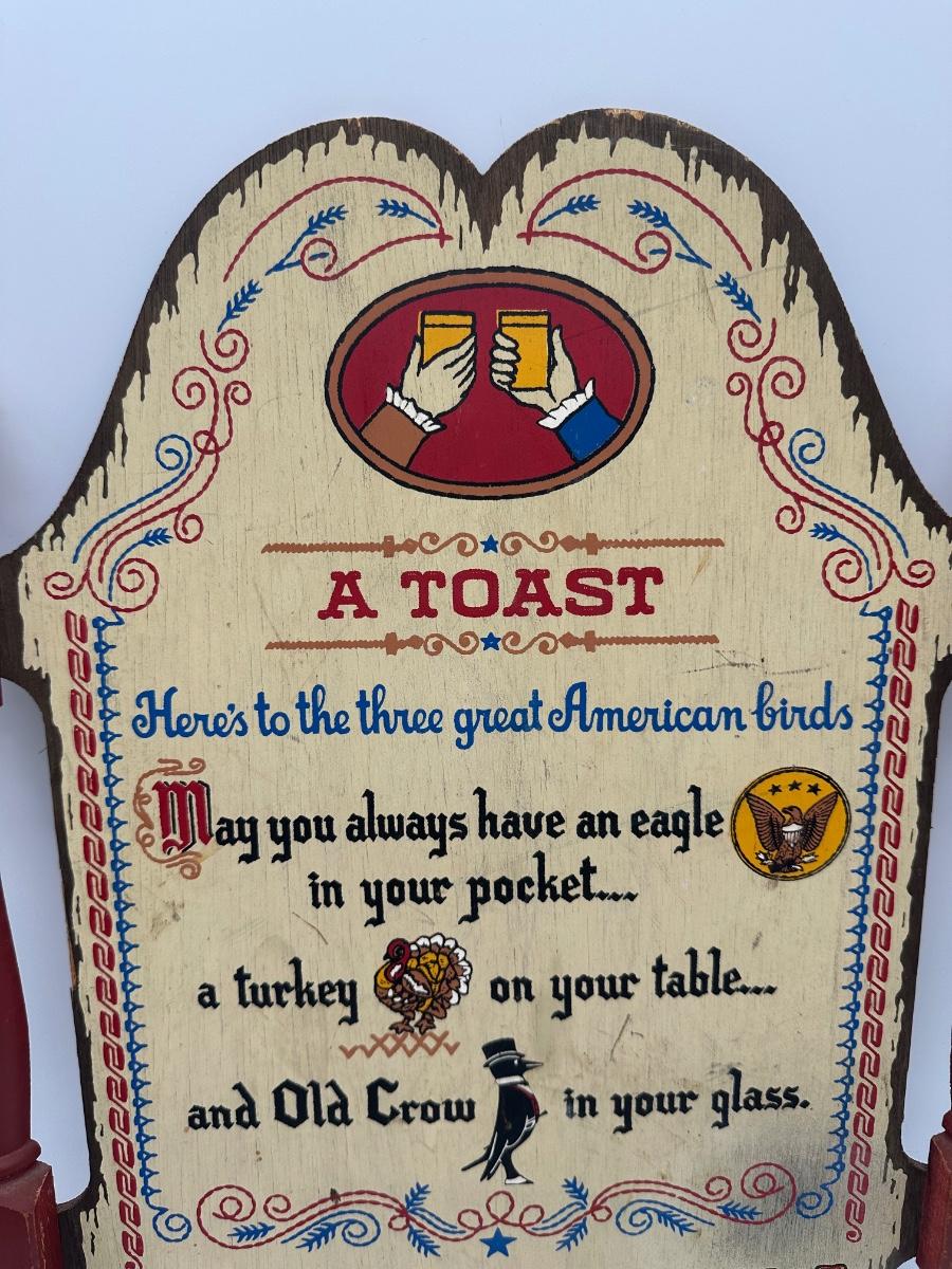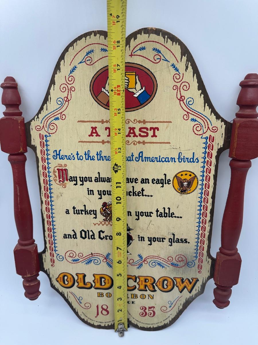 Vintage Old Crow Bourbon “A Toast” Wooden Wall Plaque