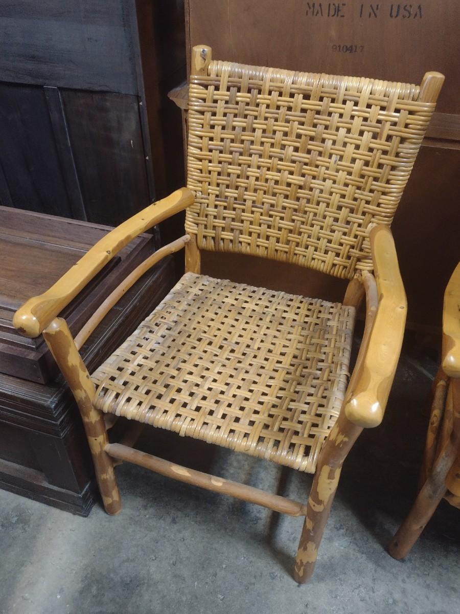 Vintage Old Hickory Furniture Cane Weave Side Chair with Arm Rests Choice B. Some of the weave may be loose.