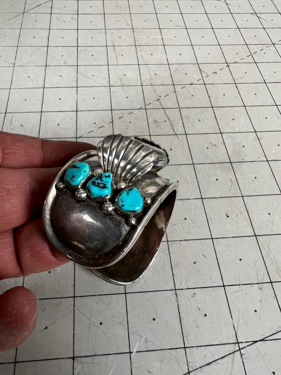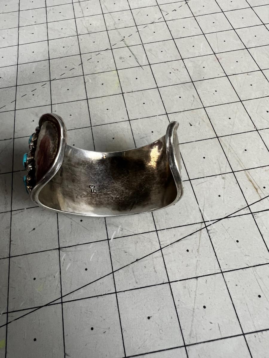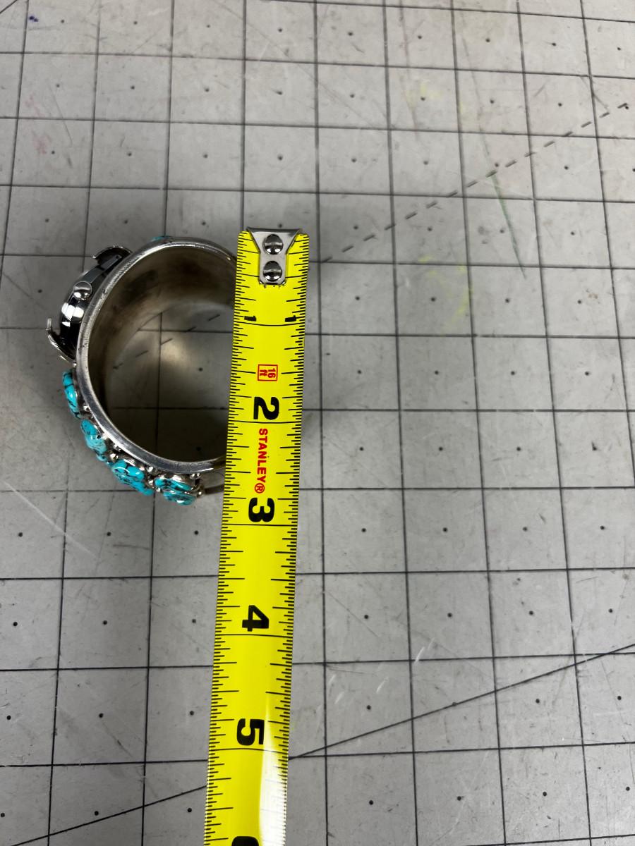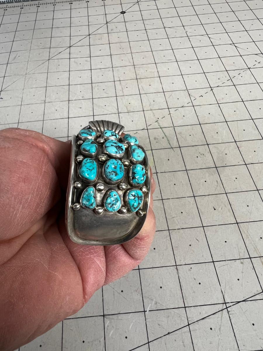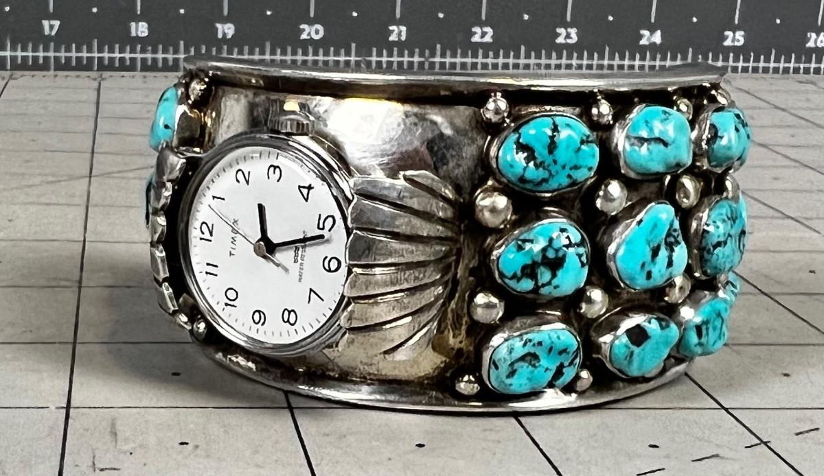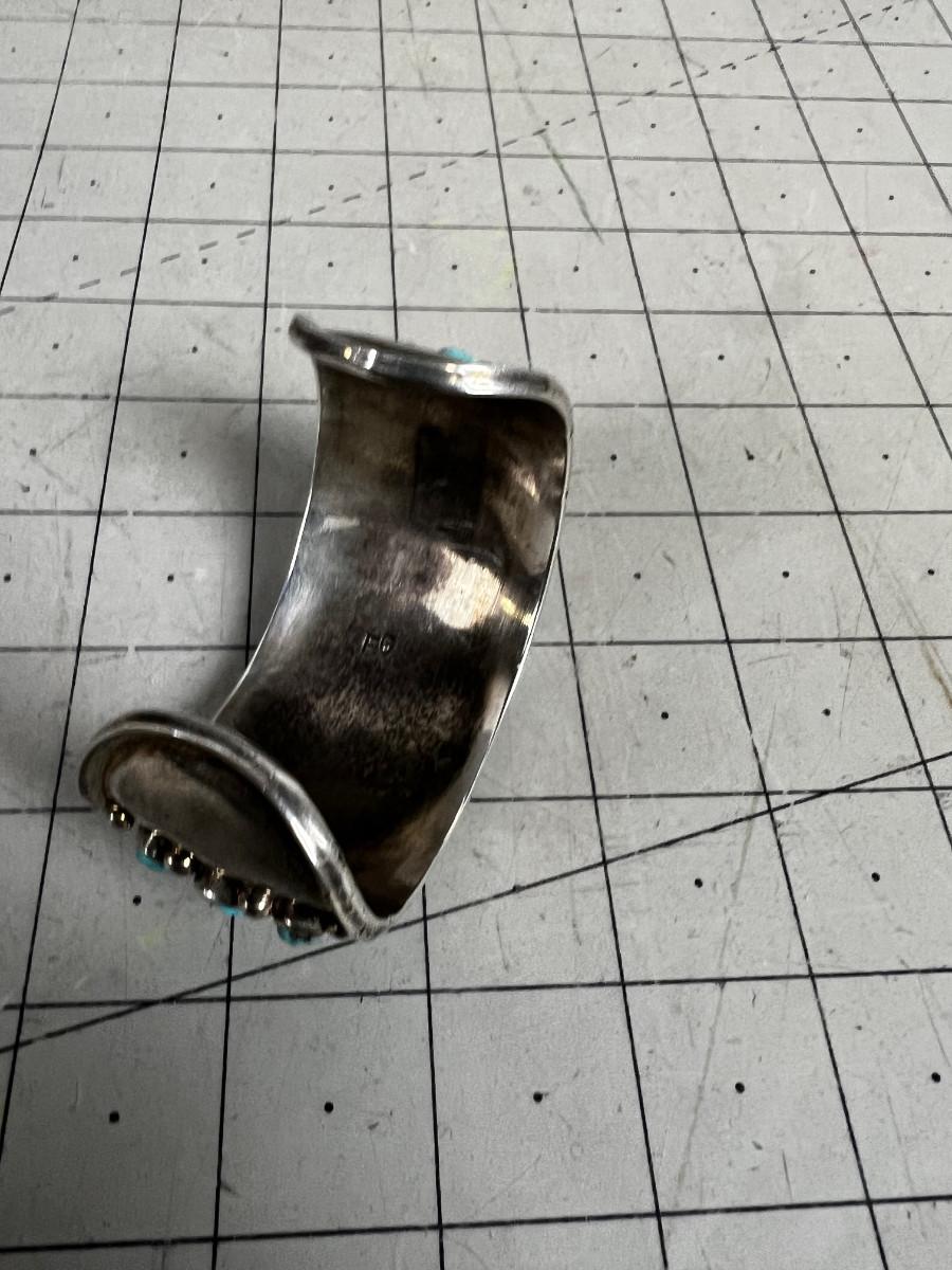 Vintage Old Pawn Silver and Turquoise Watch Cuff Marked FG