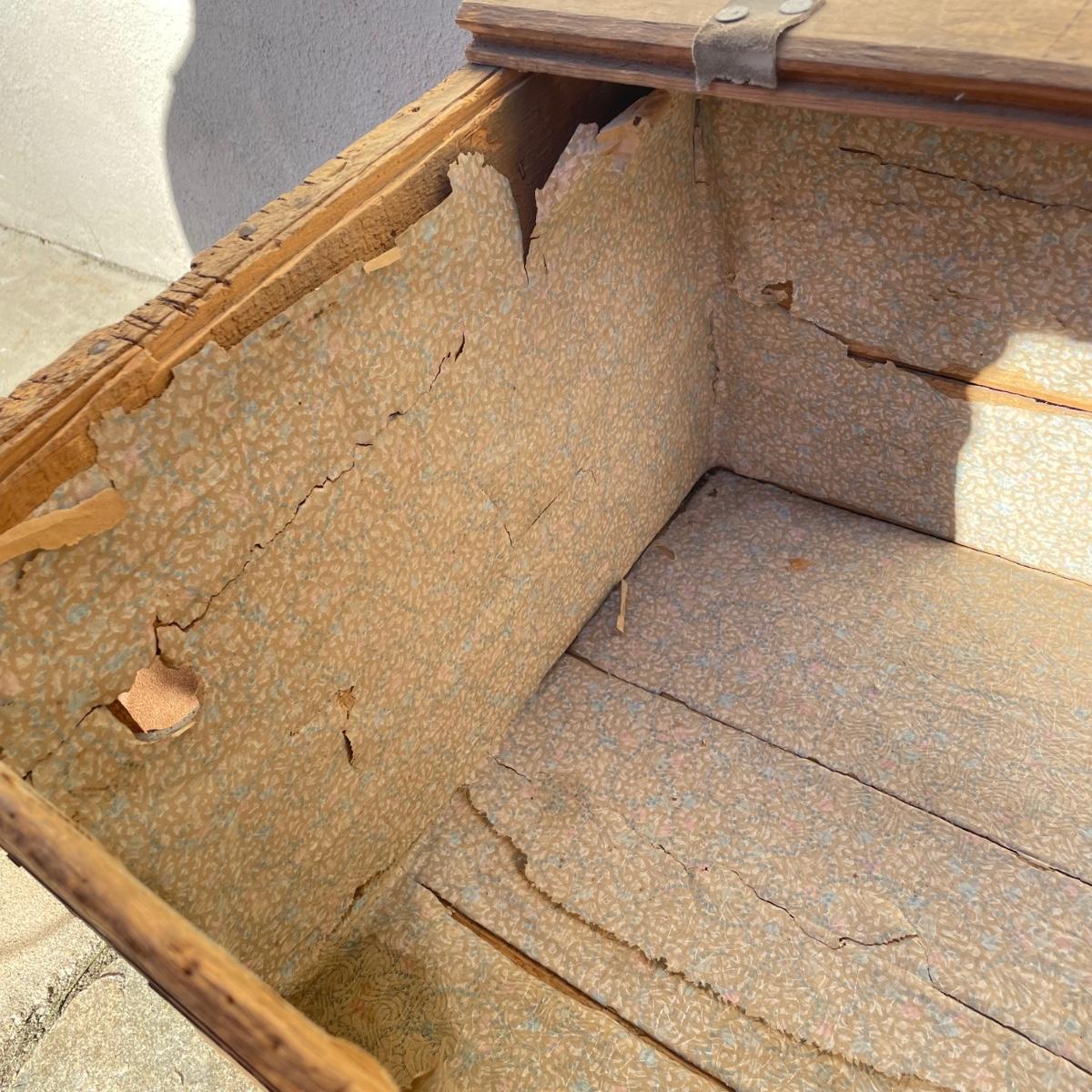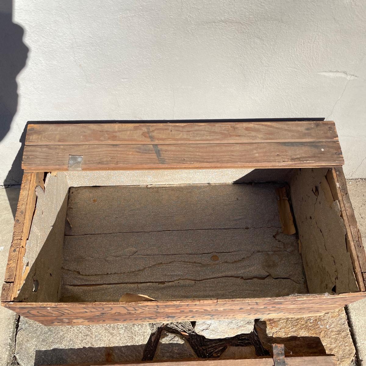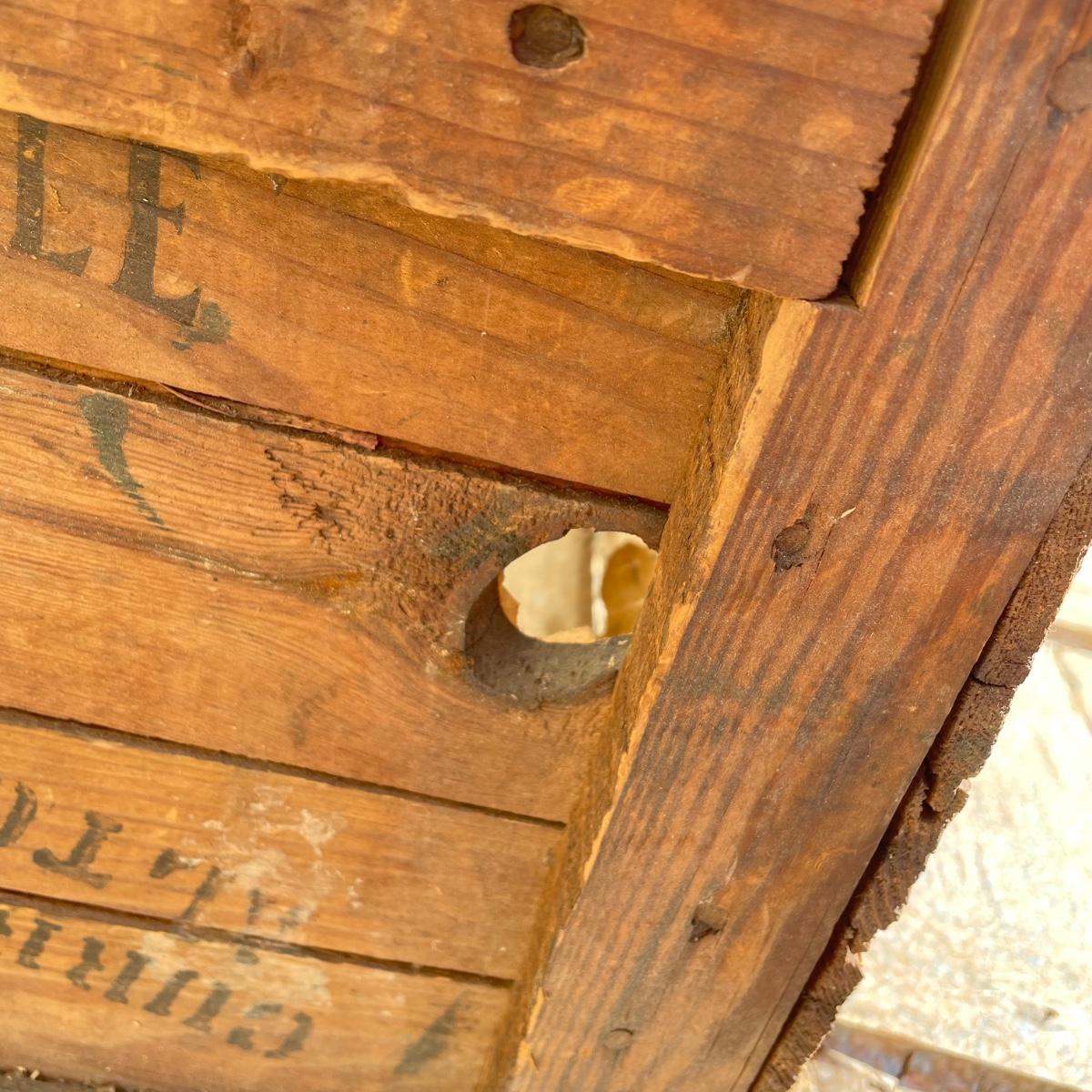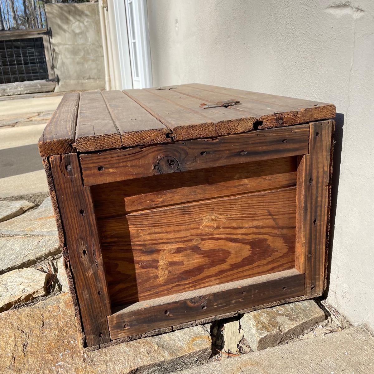 Large lidded Old Reliable Fancy Roasted Coffee crate. Box is lined with worn paper and once had leather hinges. The hinges have separated and lid fully separates to open box. Box measures approximately 31” x 17” x 13”. See images. Shipping available. Please call UPS with dimensions at 828-252-6930 for a shipping quote prior to bidding.
