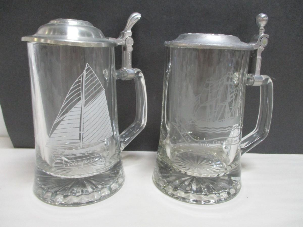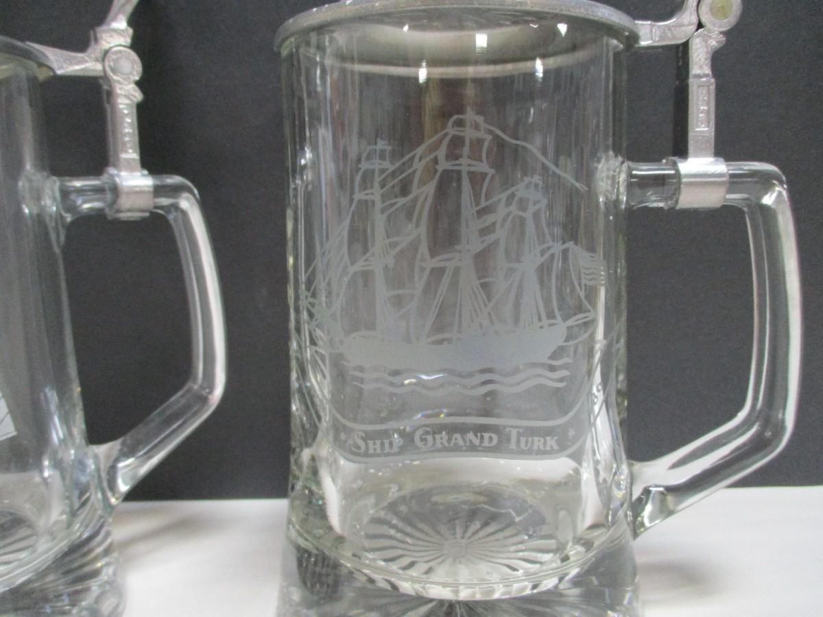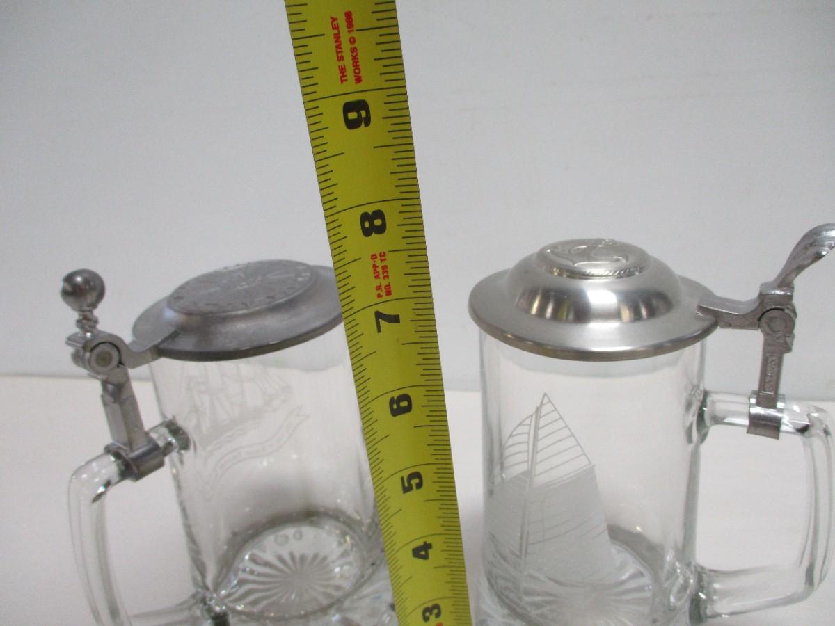 Vintage Old Spice ALWE Etched Ship Glasses Pewter Lidded German Beer Mug Stein