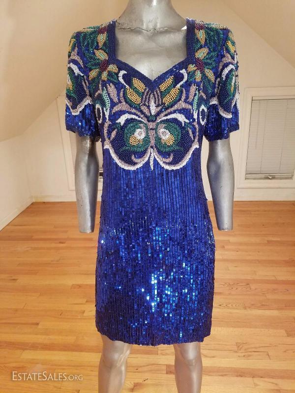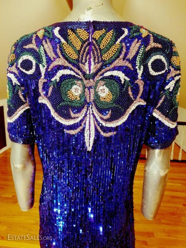 Amazing and an original stunner by Iconic oleg Cassini for BlackTie. 100% silk and Elaborately beaded & sequined Flapper dress with a papillon design.