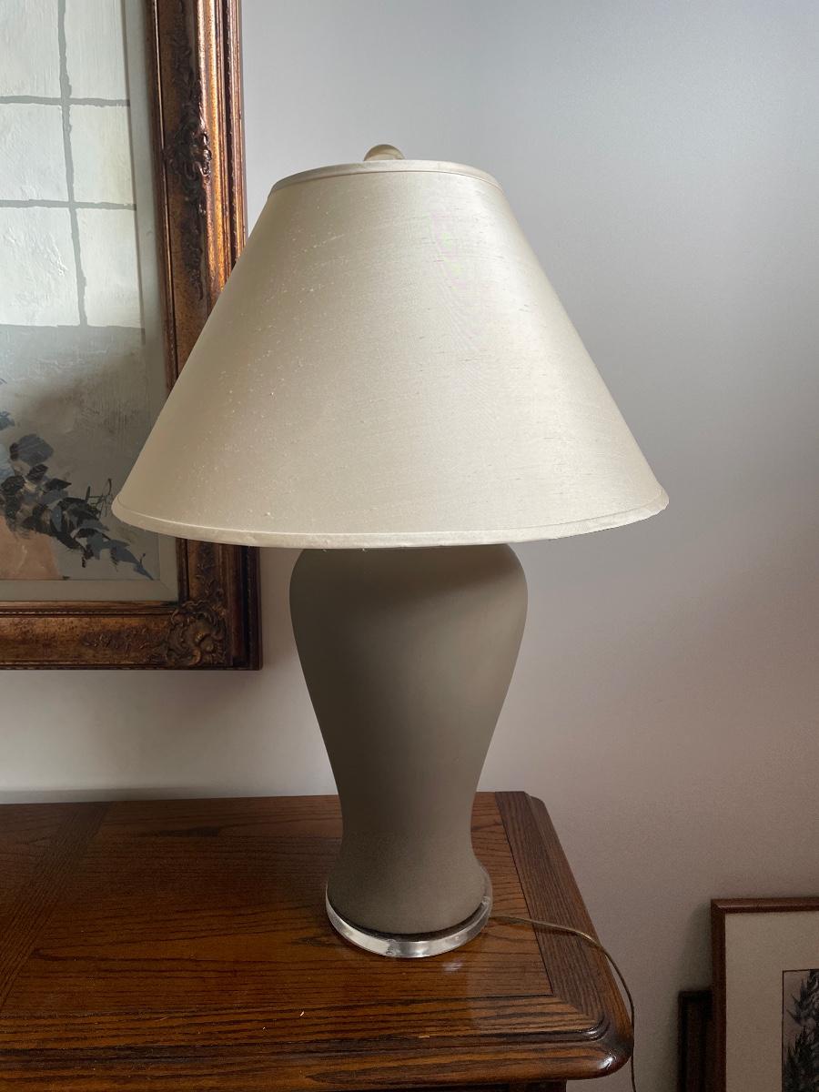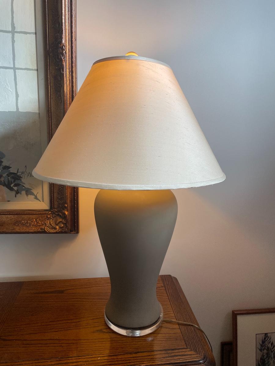 #33 Vintage Olive Green Ceramic & Clear Acrylic Base Table Lamp