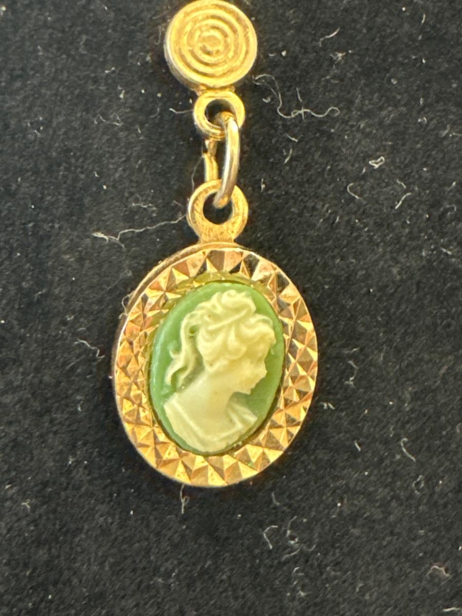 Vintage olive, green, gold, toned cameo earrings