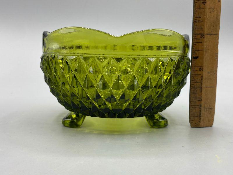 Vintage Olive Green Pressed Glass Footed Candy Bowl YD#011-1120-00219