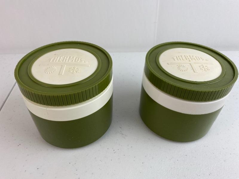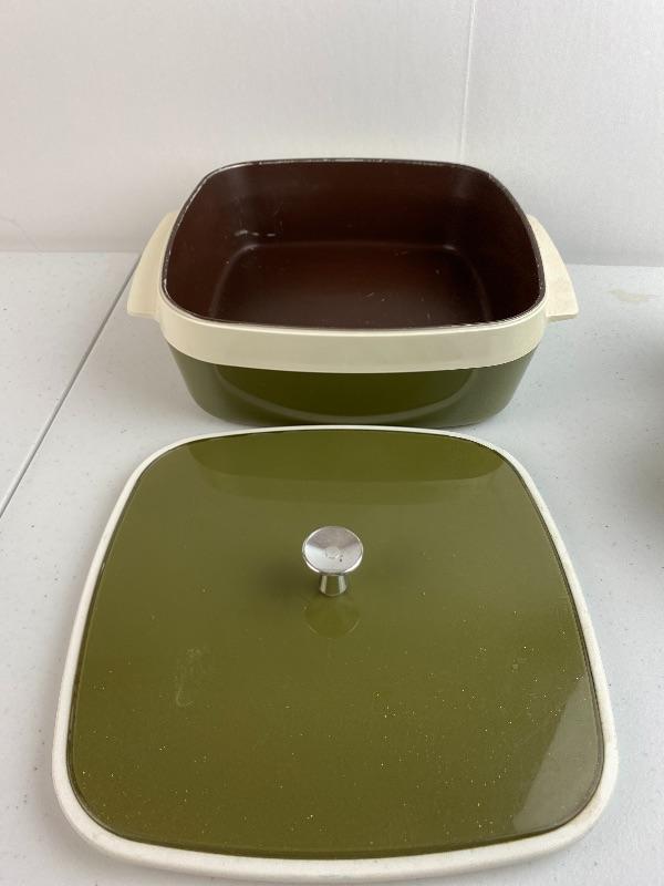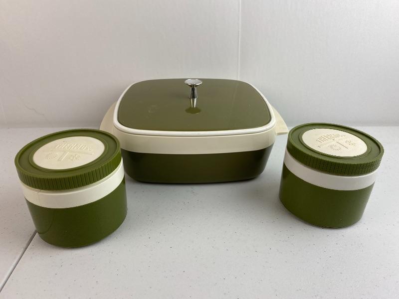 Lot # 215 -Vintage Olive Green Thermos Set & Casserole Dish