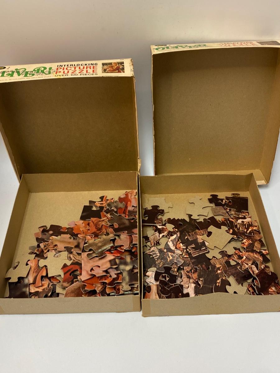 Vintage Oliver the Musical Picture Puzzle Set Open Boxes. Unsure of completeness.