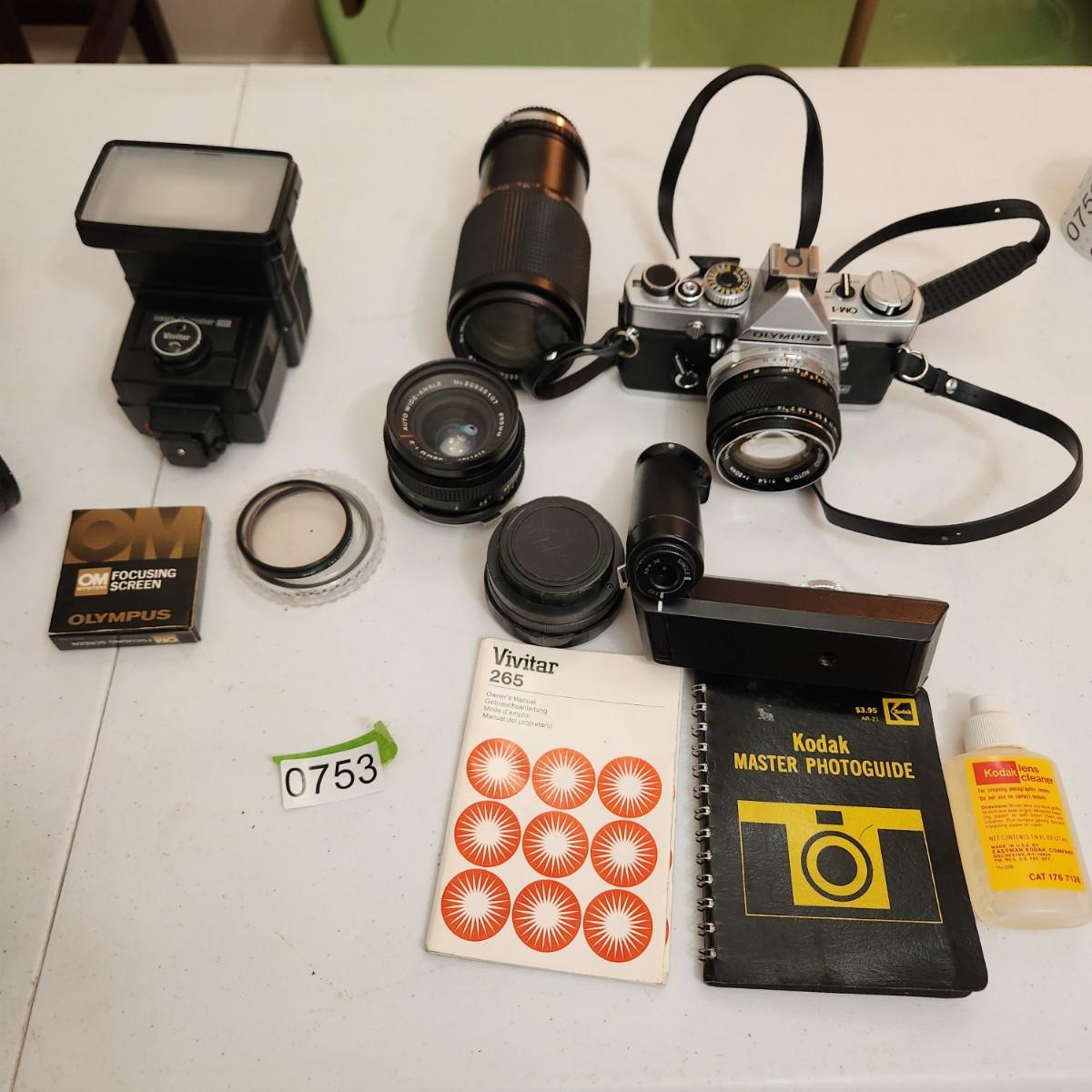 Vintage Olympus OM-1 SLR Camera w Lens Flash Winder
