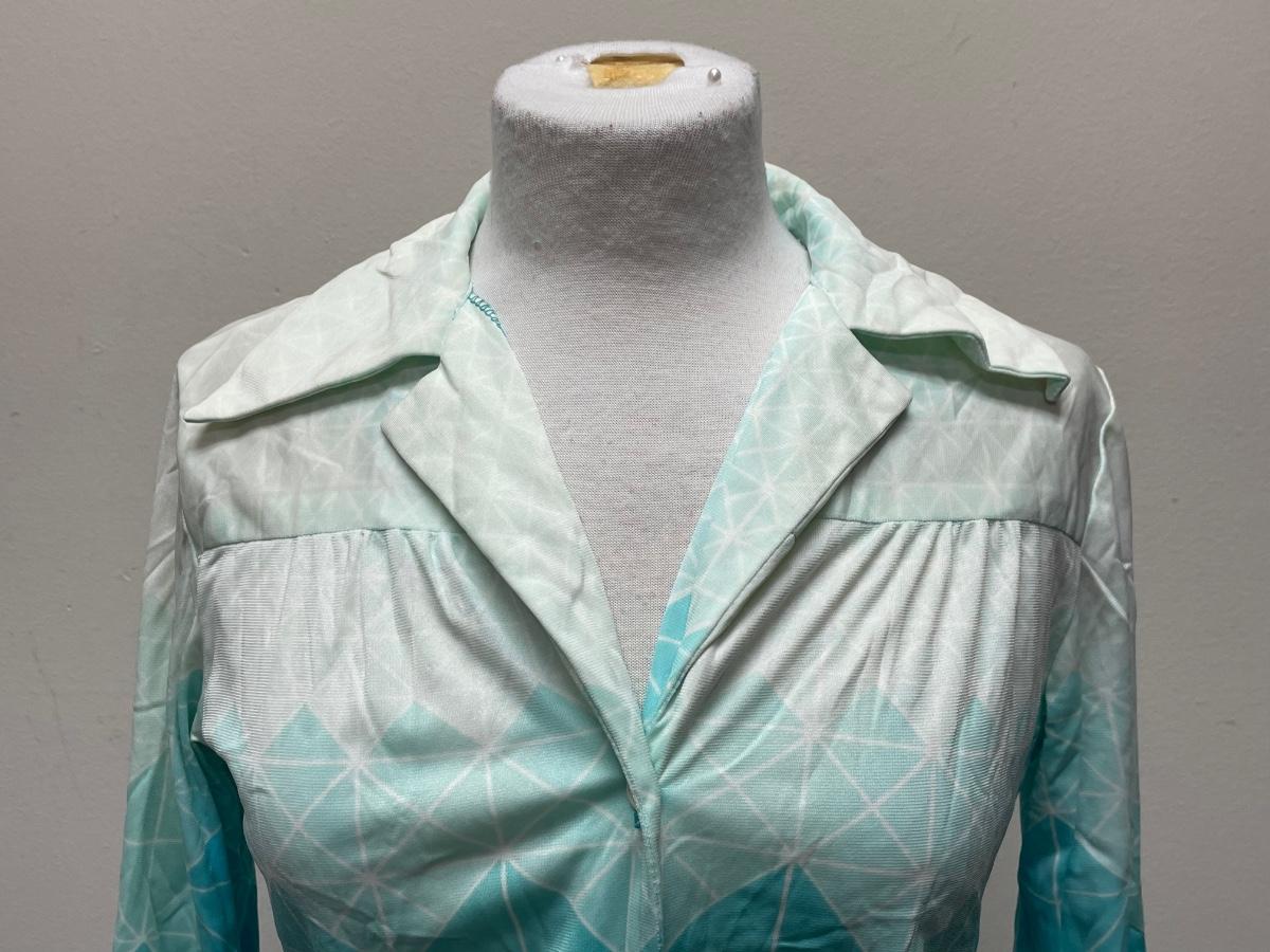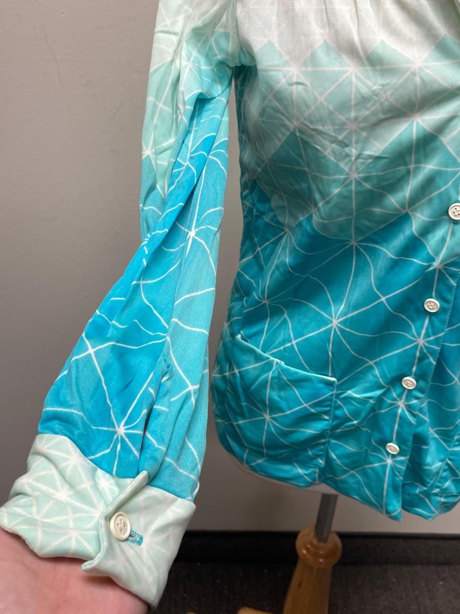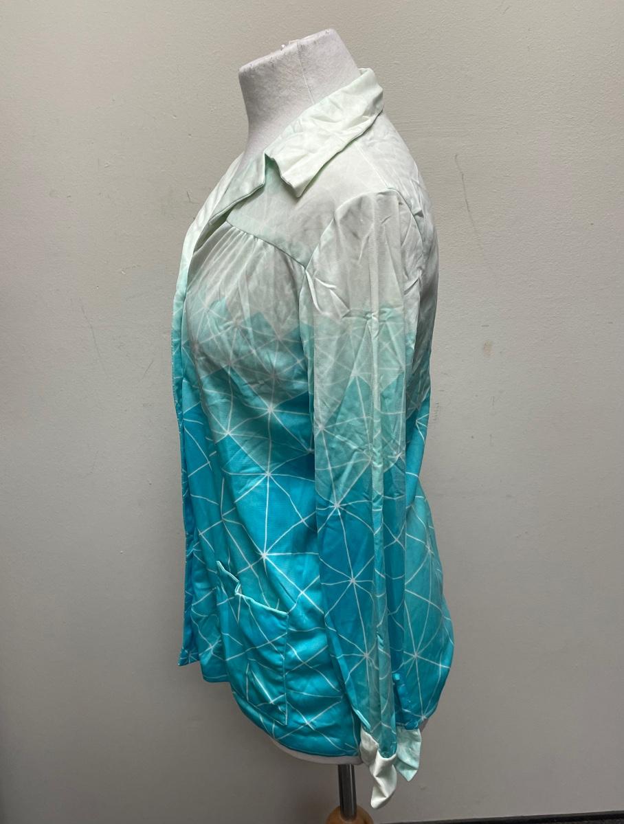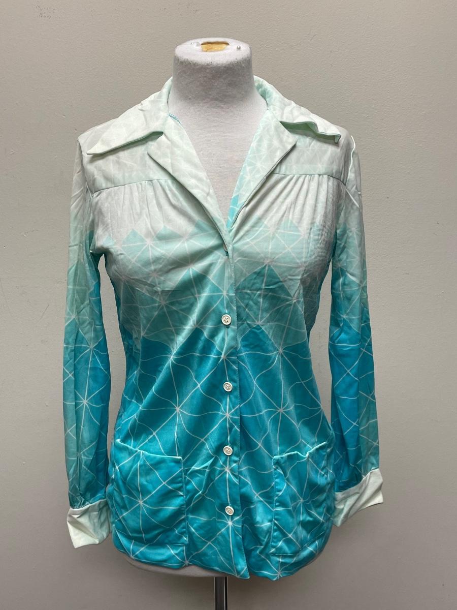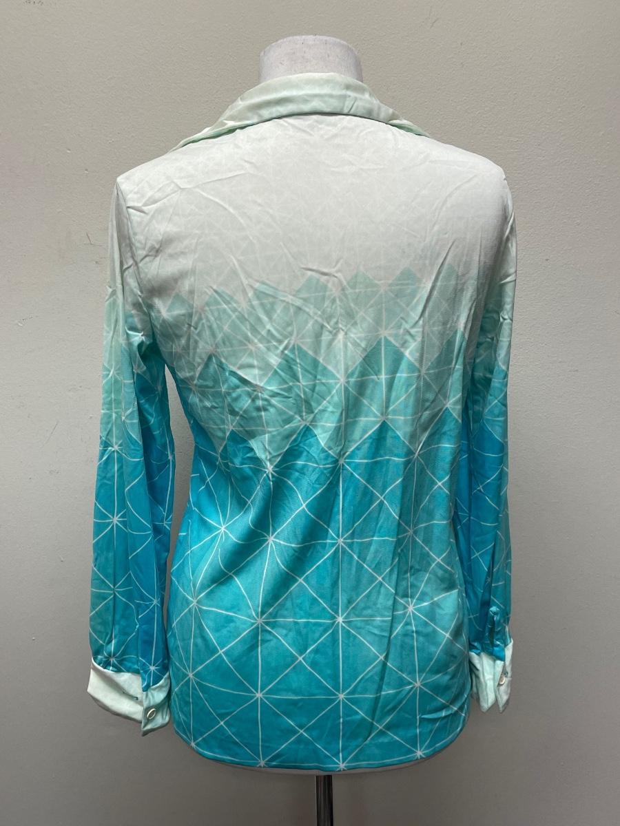 Vintage Ombré Blue V Neck Button Up Collar Long Sleeve Shirt
