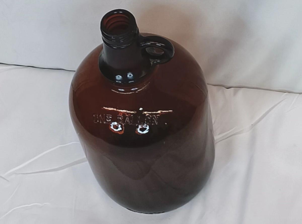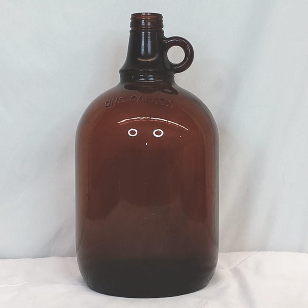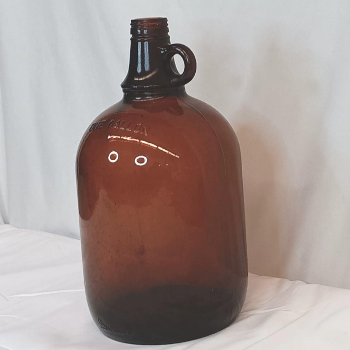 This vintage one gallon amber glass jug is in good condition. It is free of chips or cracks.