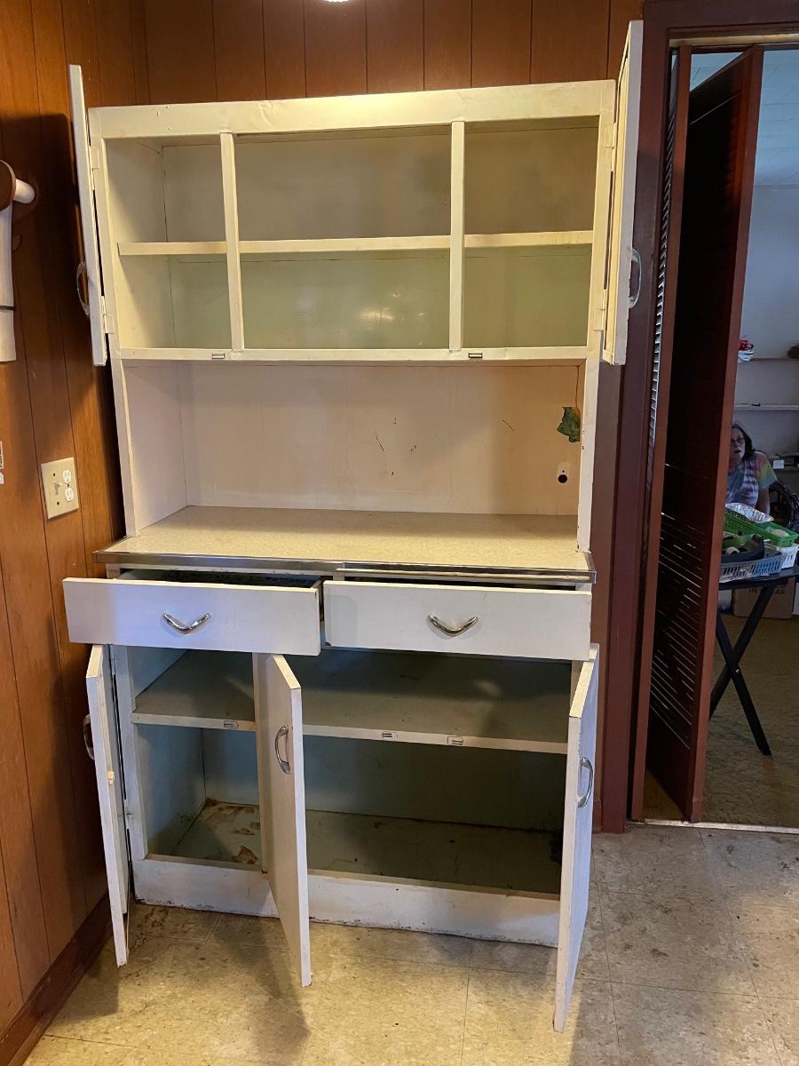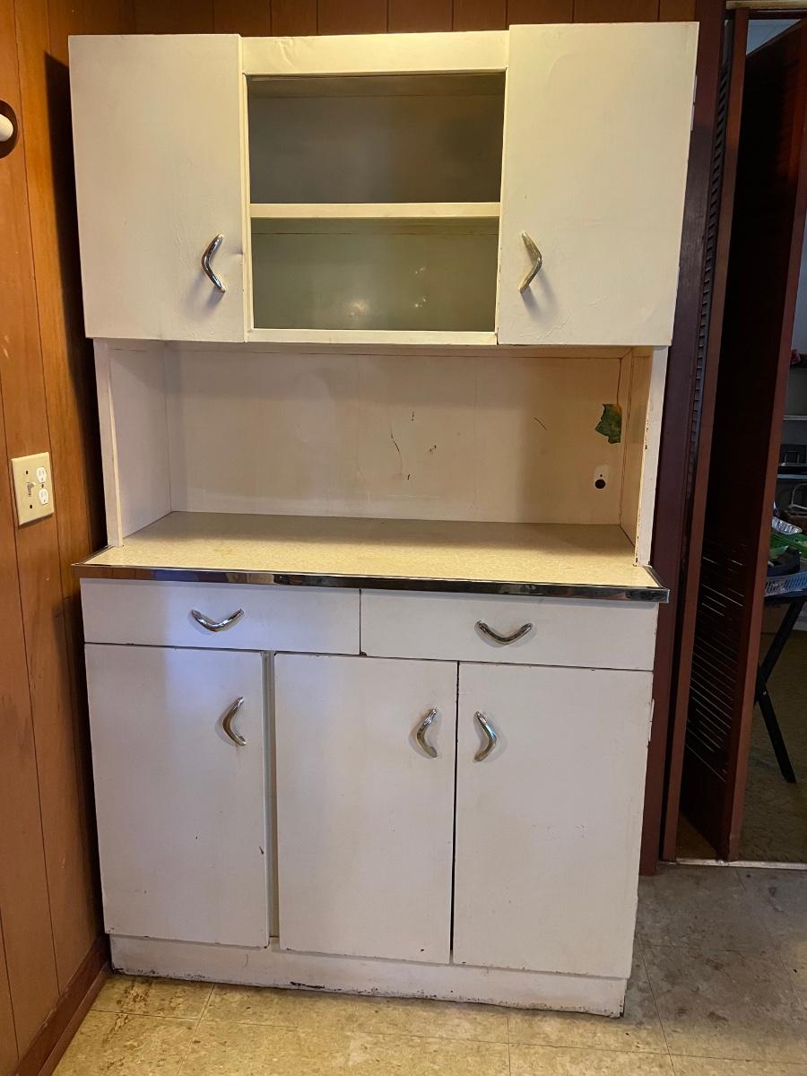 Vintage One Piece Metal Kitchen Cabinet. Removable countertop.