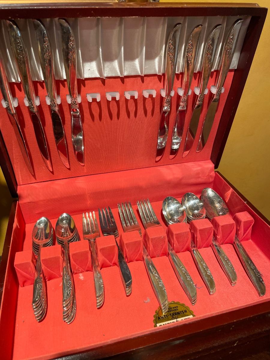 Vintage Oneida silverware In wood box
