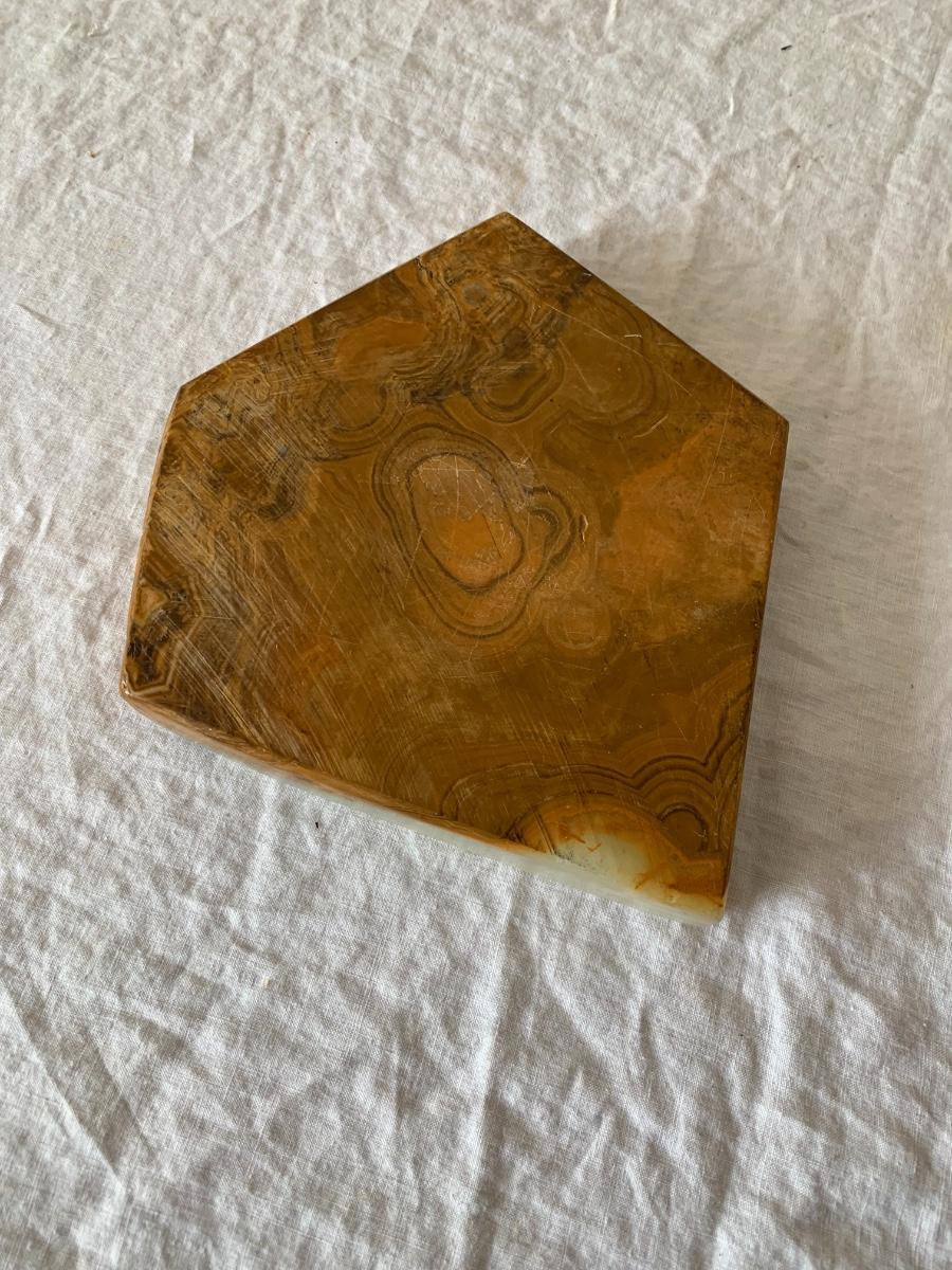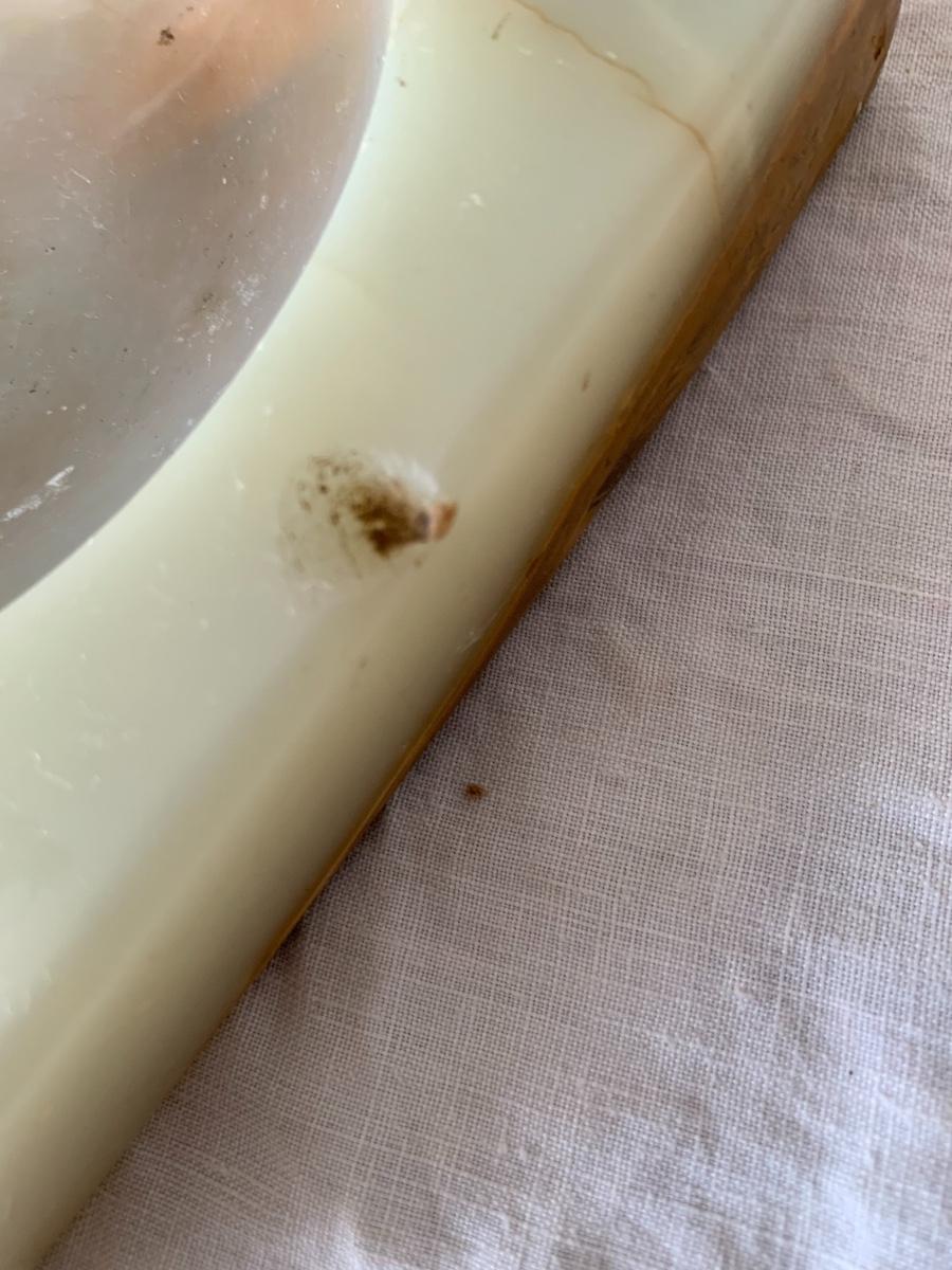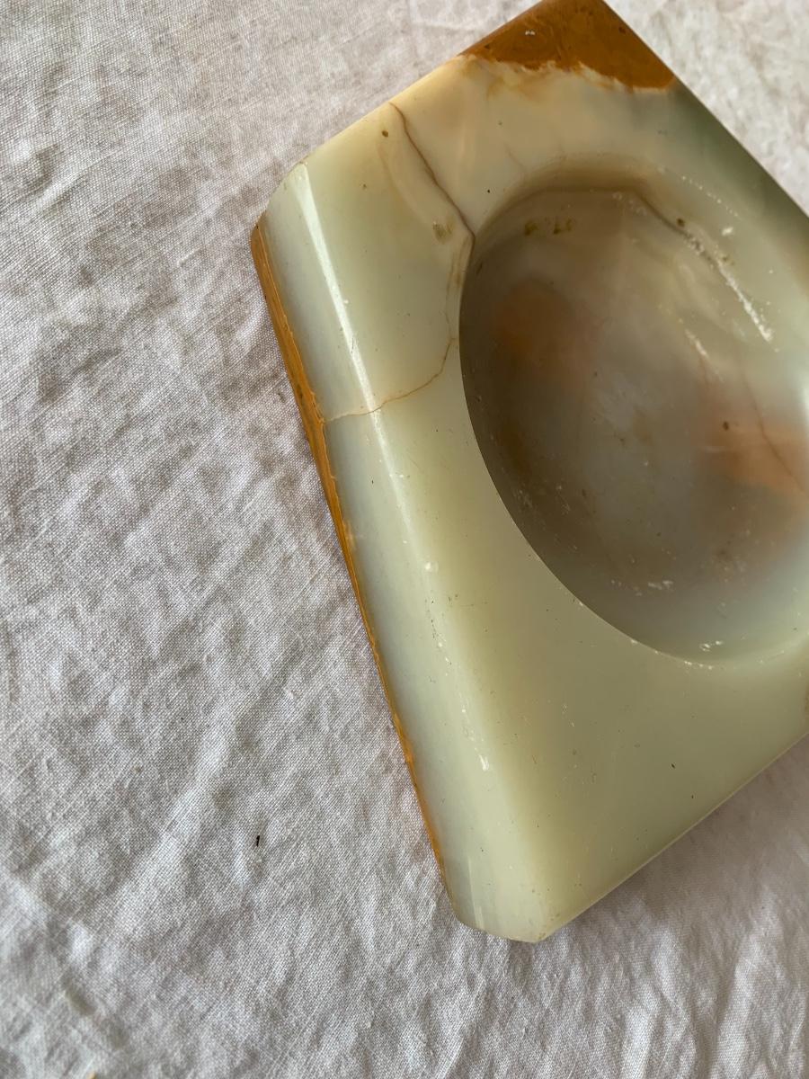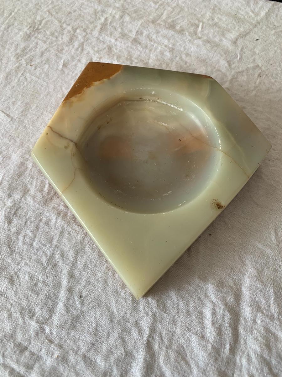 irregularly shaped shallow onyx ashtray / trinket bowl. Small chip as seen in photo.