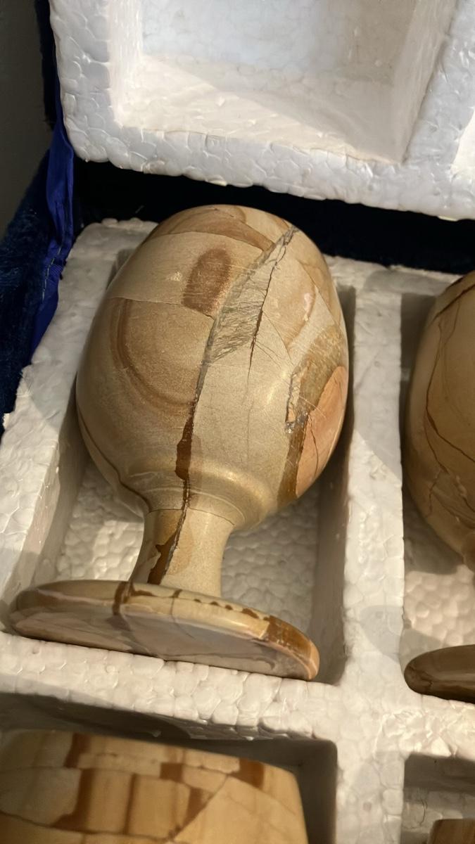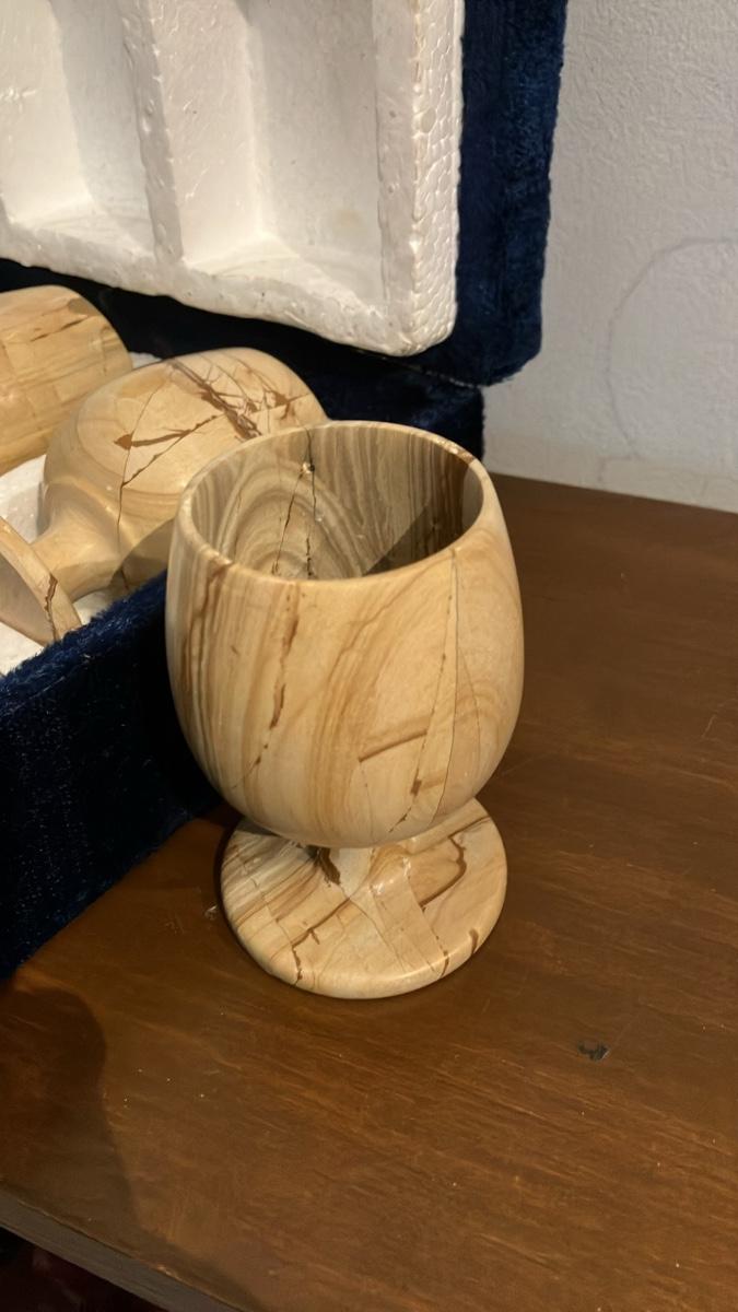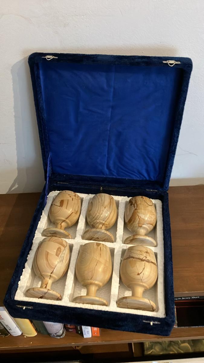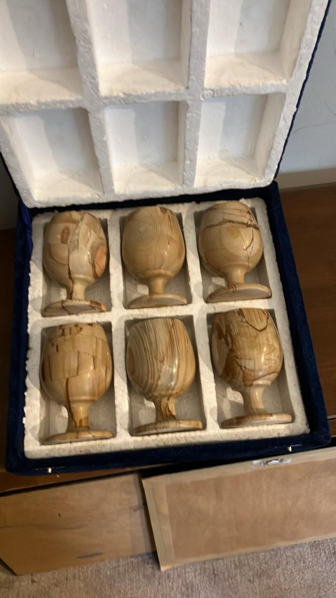 Vintage Onyx Stone Wine Glasses, 4” tall Goblets in Original Velvet Box