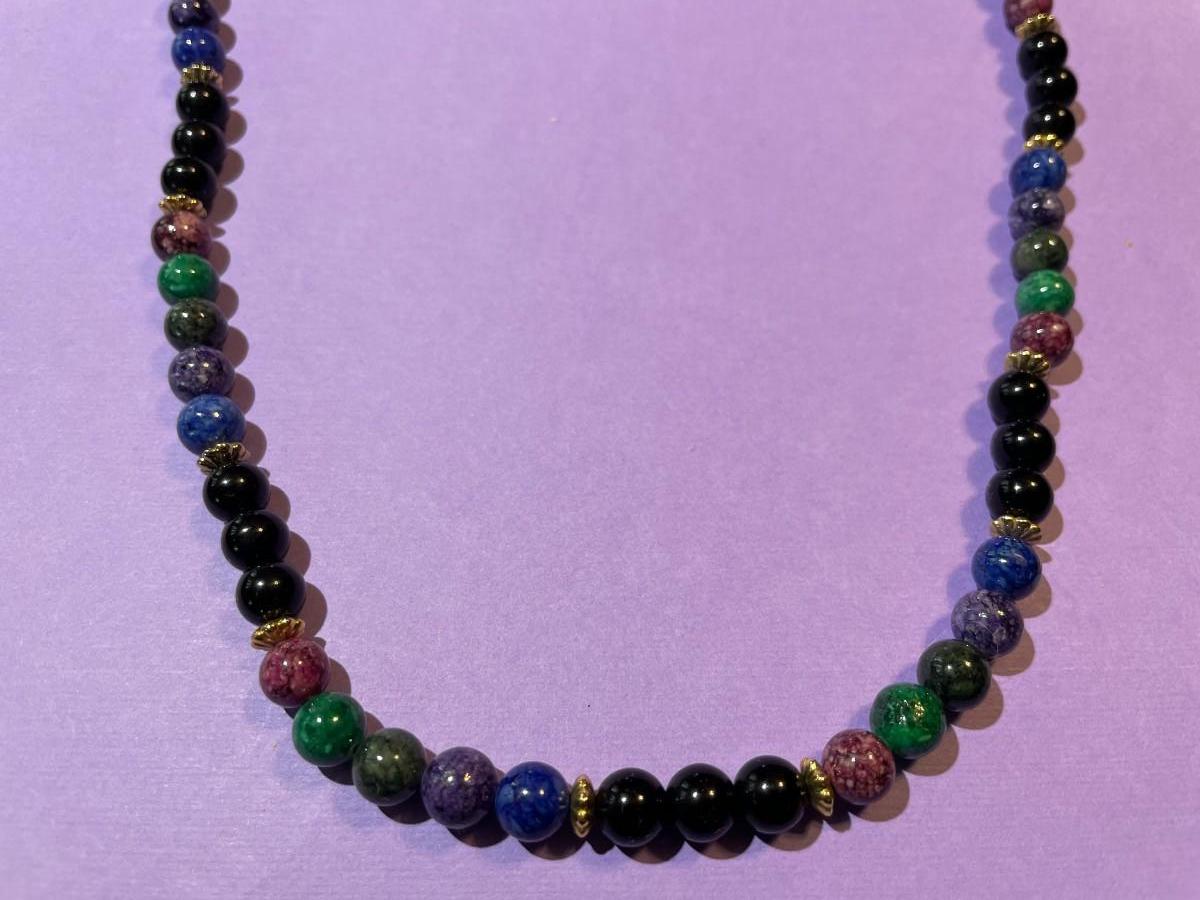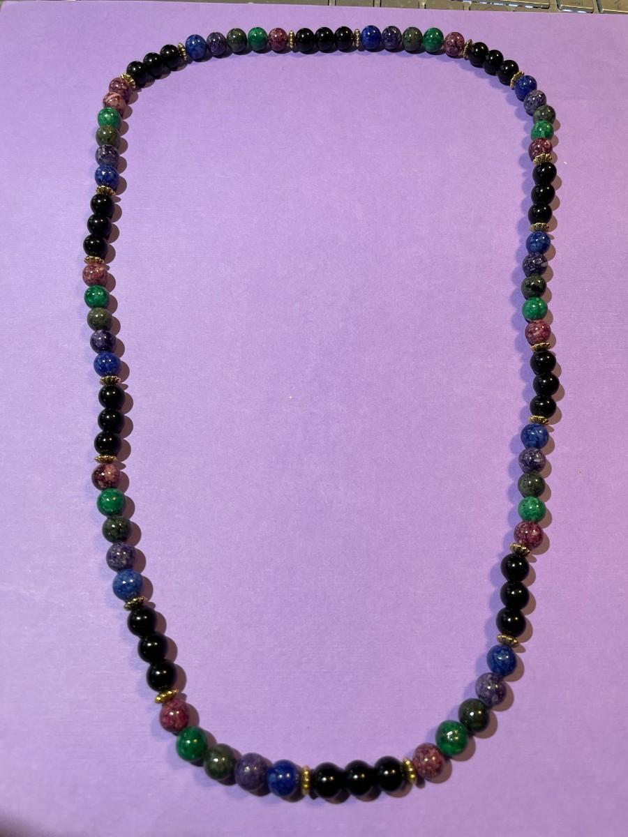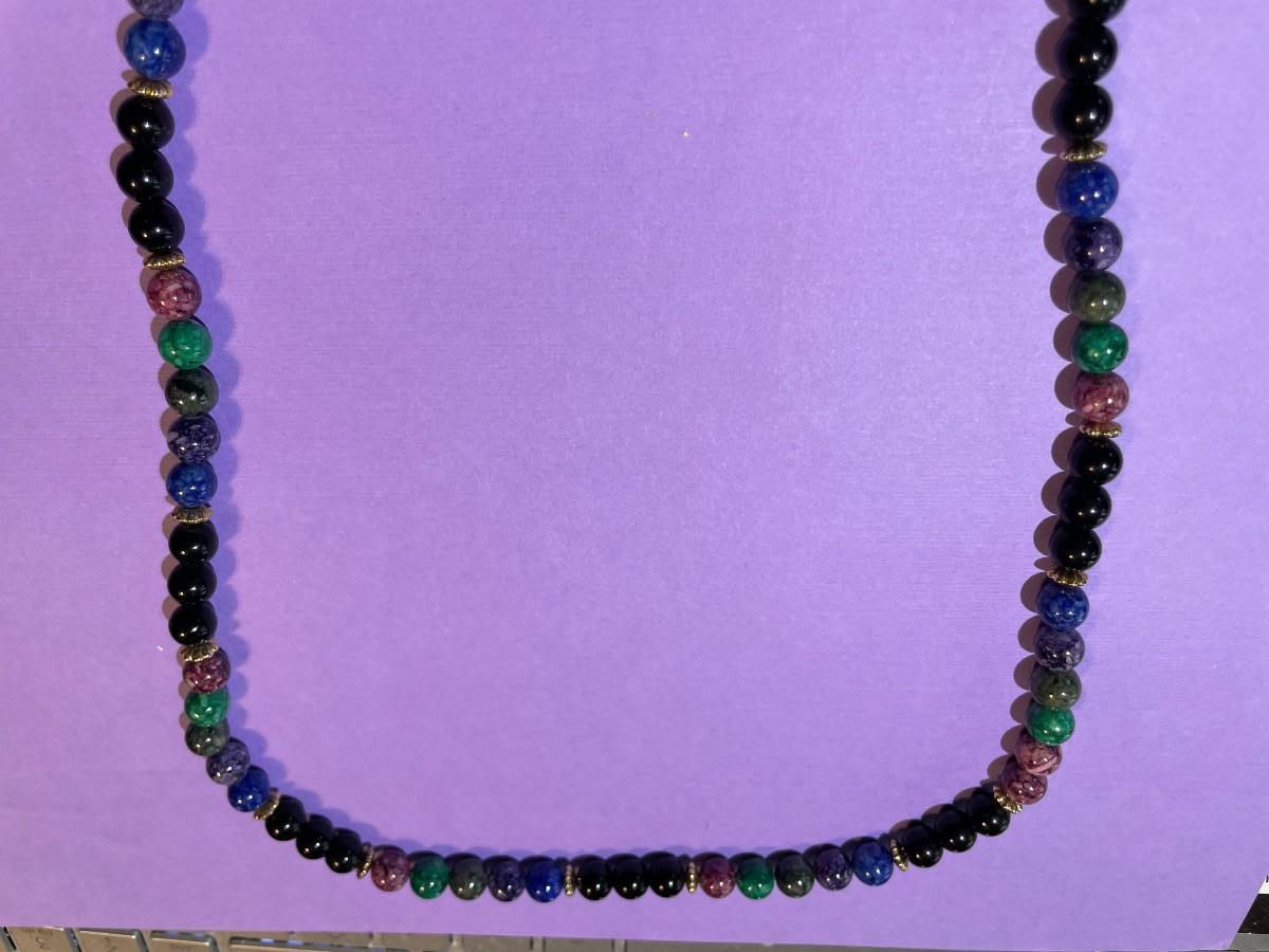 Vintage Onyx/Agate 26" Fashion Bead Necklace w/Gold-tone Spacers in VG Preowned Condition. $5 Domestic Inhouse Shipping.
