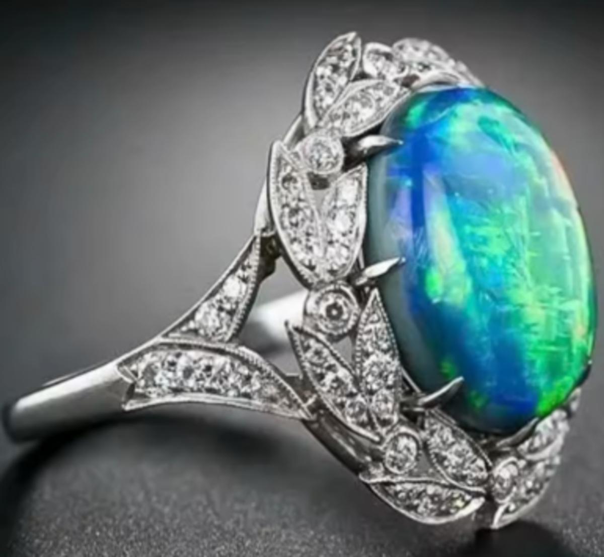 Vintage Opal Cocktail Ring 925
