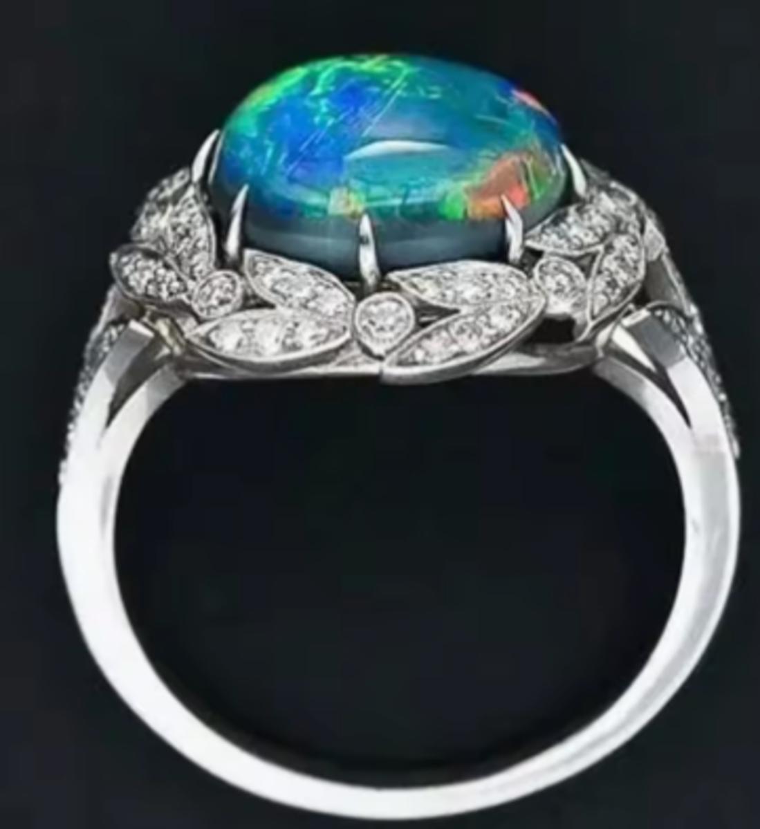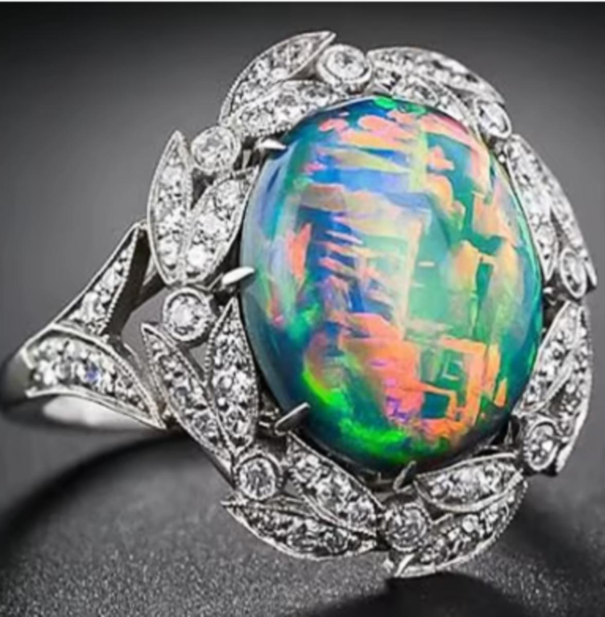 Vintage Opal Cocktail Ring 925