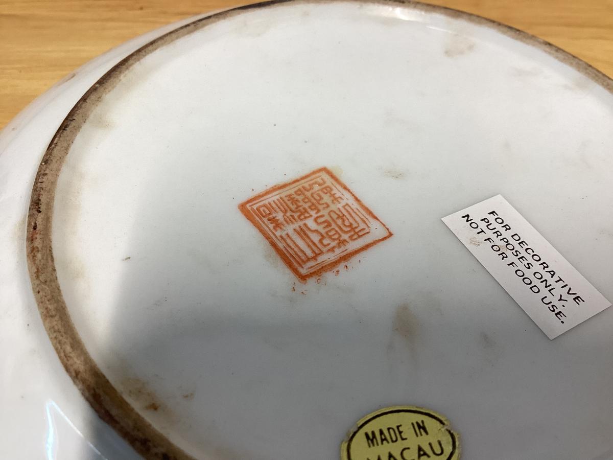 according to google lens when we search the red seal mark on the bottom contains Chinese characters that indicate it was made during Qianlong period but it was made in Macau so we are thinking this means it represents the Qianlong period not actually that old. We ARE NOT EXPERTS. please see photos
