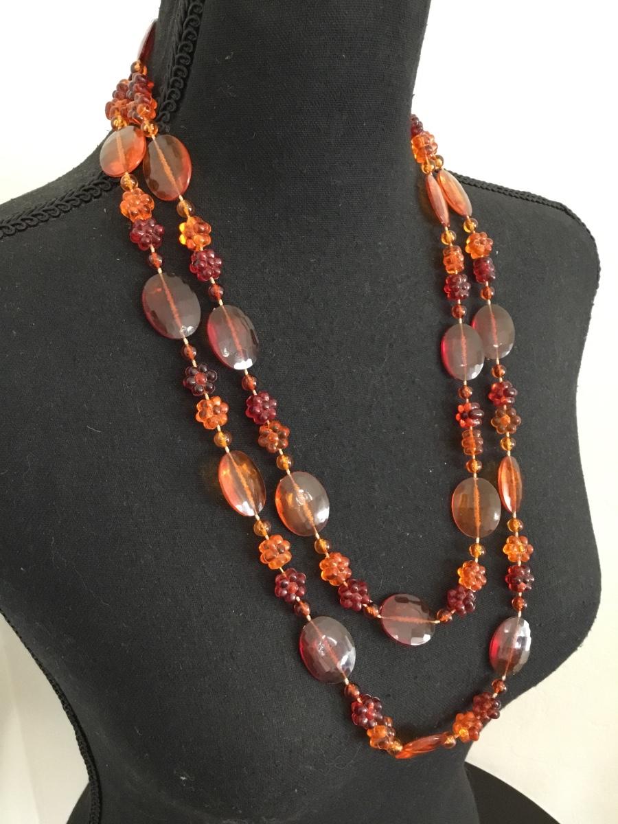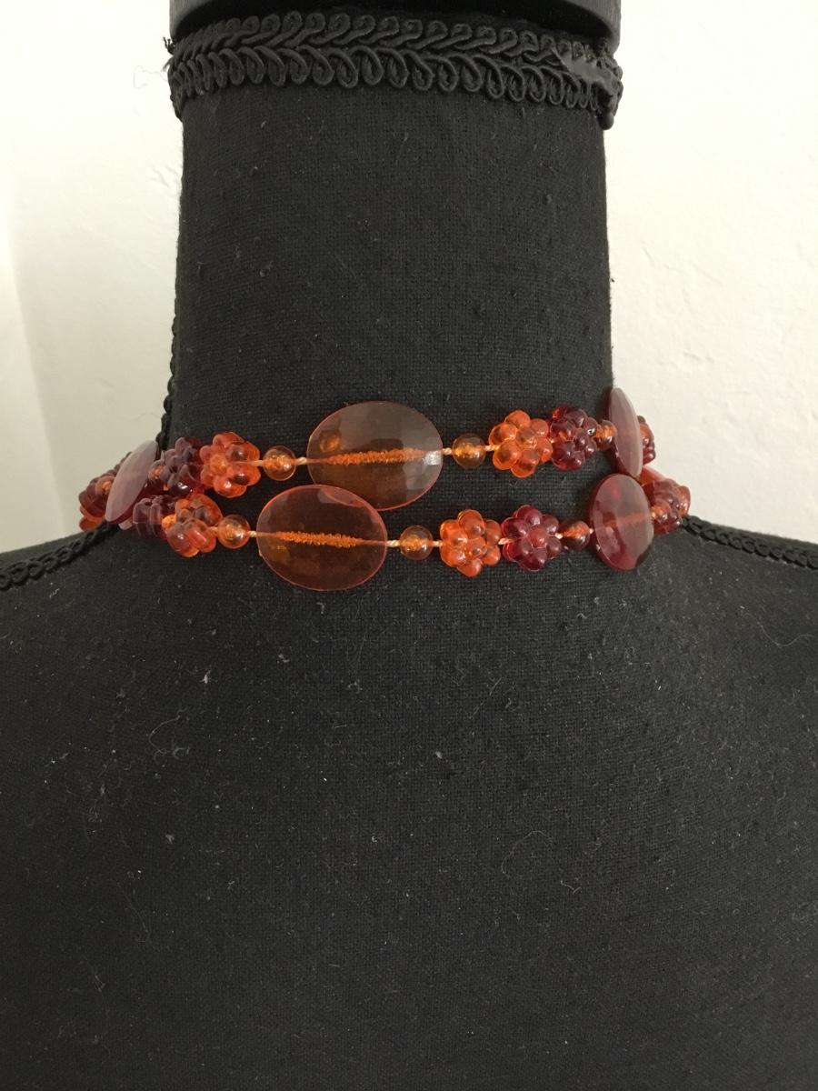 Vintage, orange amber Lucite plastic type bead long layering necklace