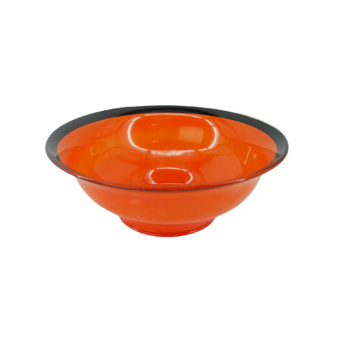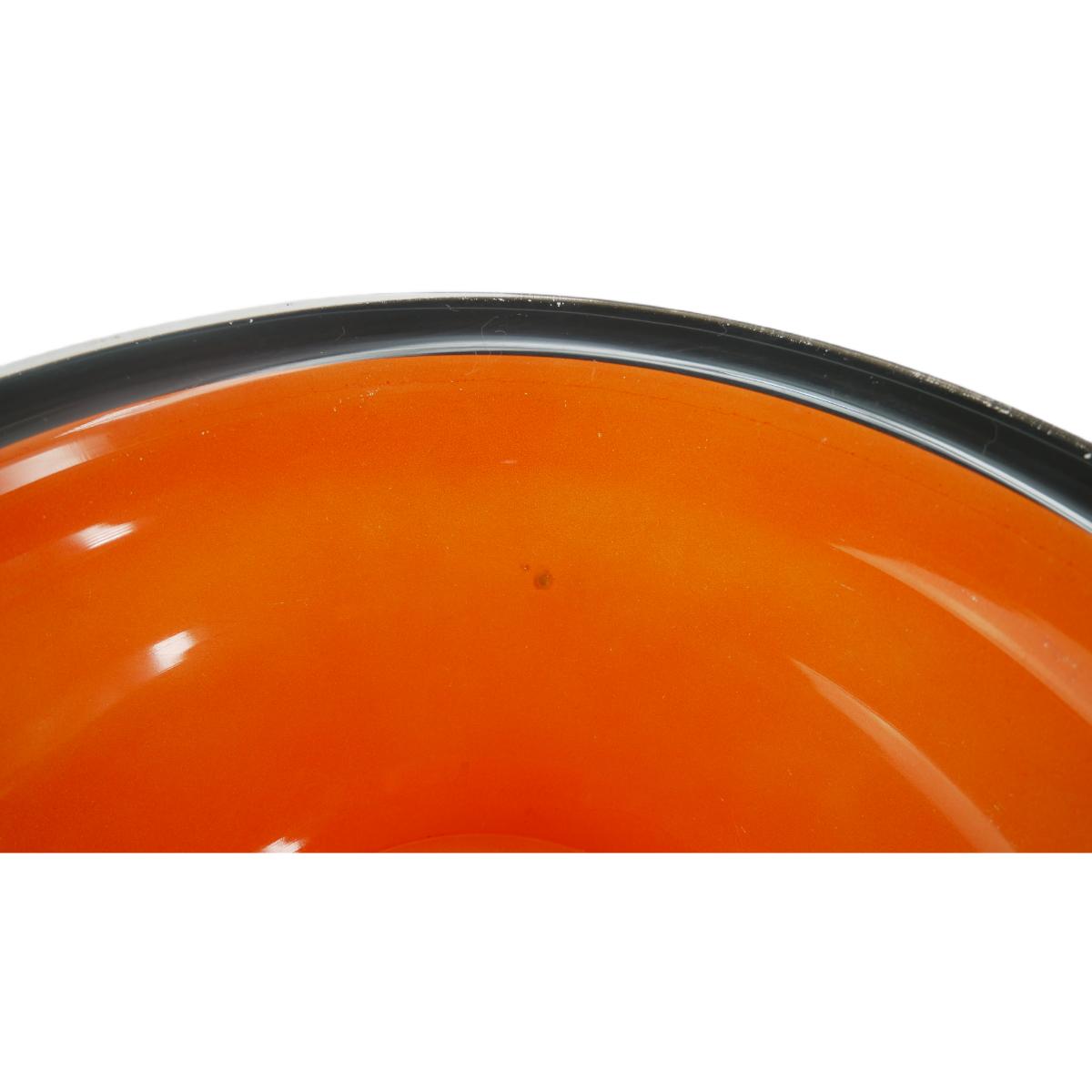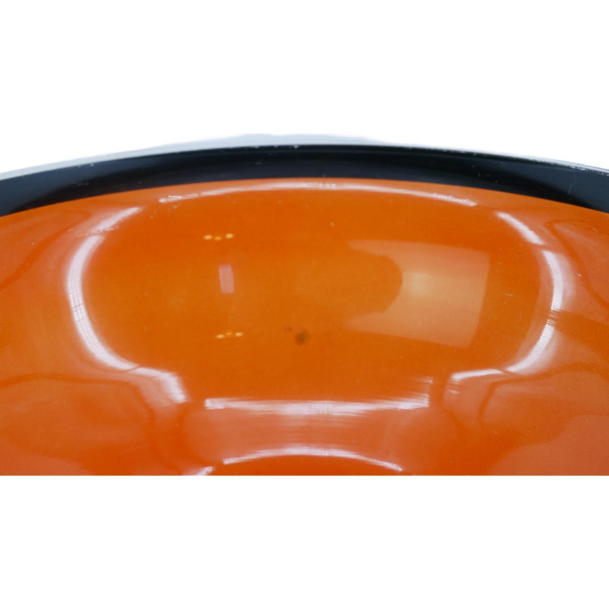 Vintage hand painted orange and black serving bowl. Good condition, some paint wear (see photos). Measures approximately 9.5" in diameter and 4" in height. Weighs 2 lb 6 oz. (D61)