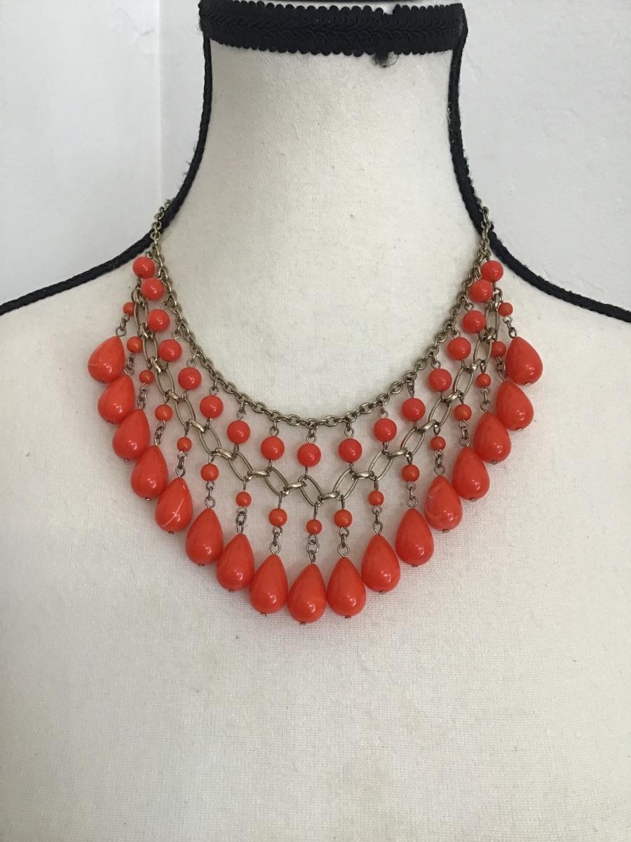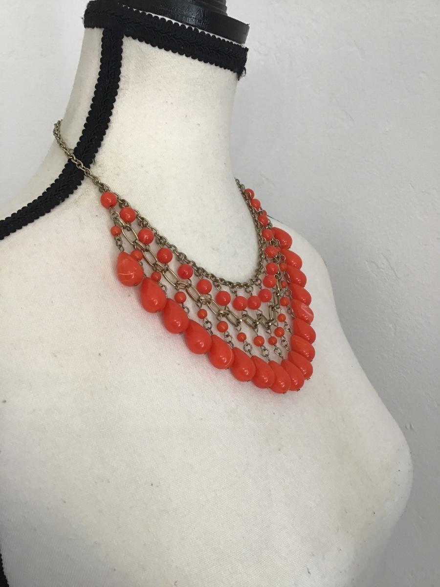 Vintage, orange, beaded statement necklace. Please see attached photos.