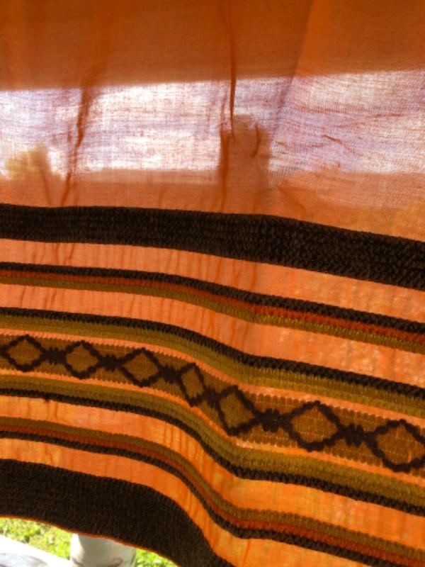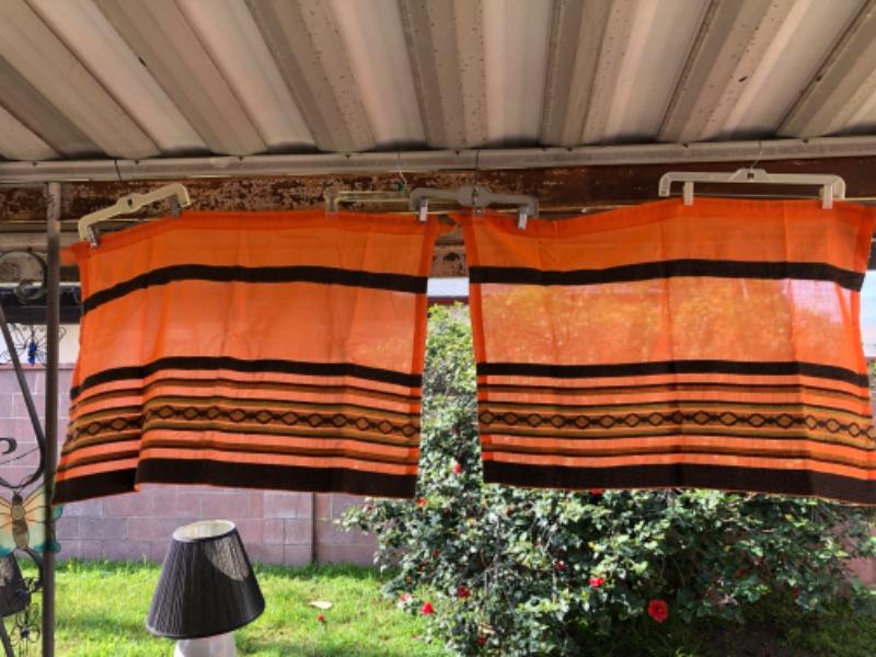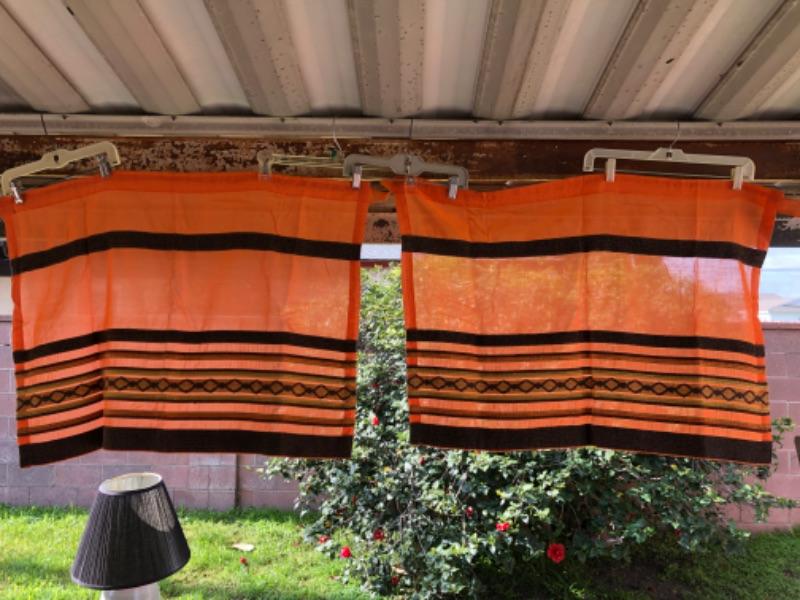 pair of Retro Orange Cafe Curtains with brown & gold trim Mid Century MCM