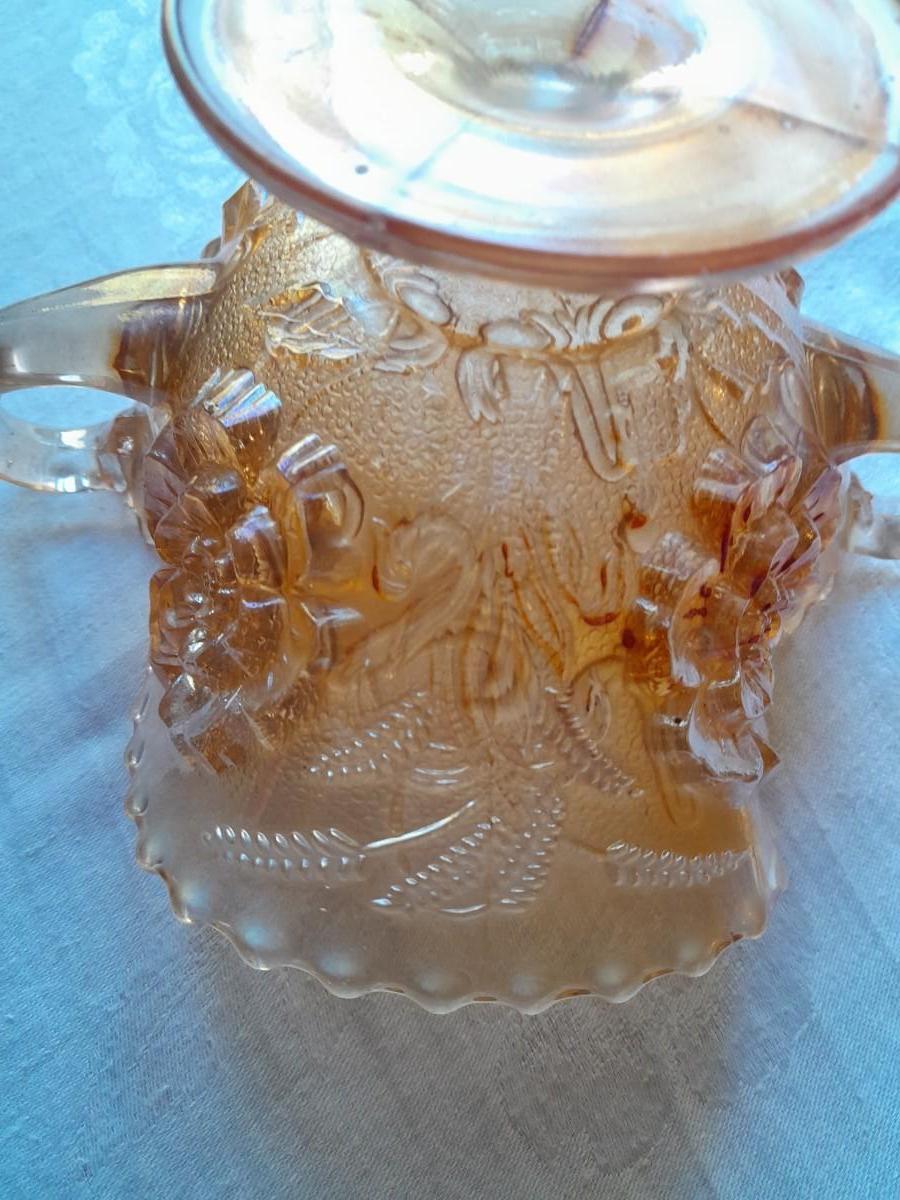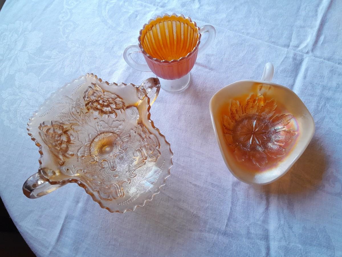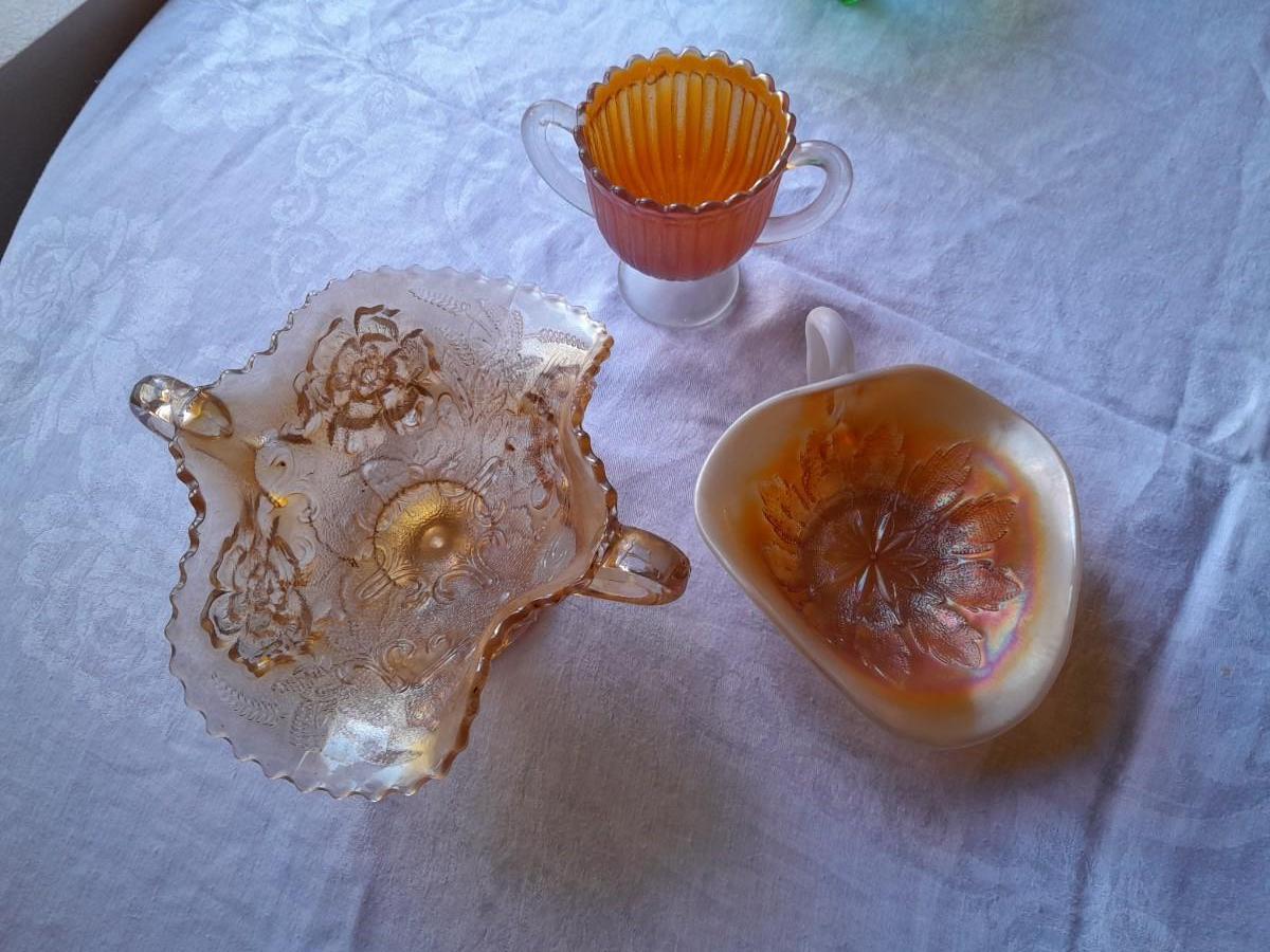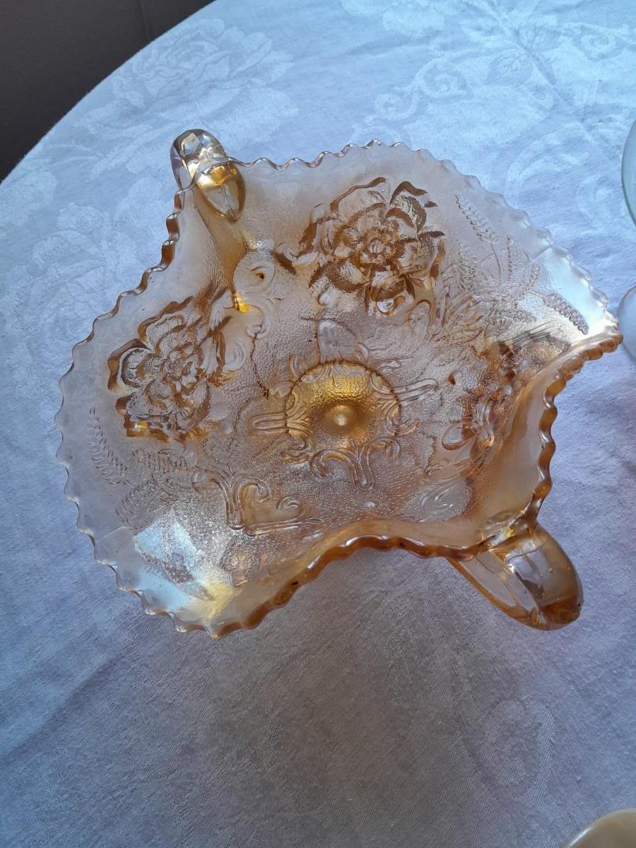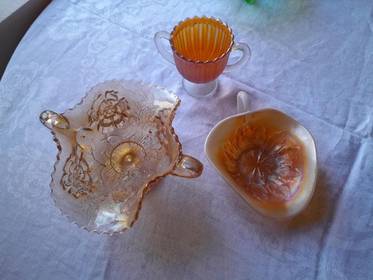 VINTAGE AMBER GLASSWARE TWO BOWL DISHES AND A DOUBLE HANDLED DISH