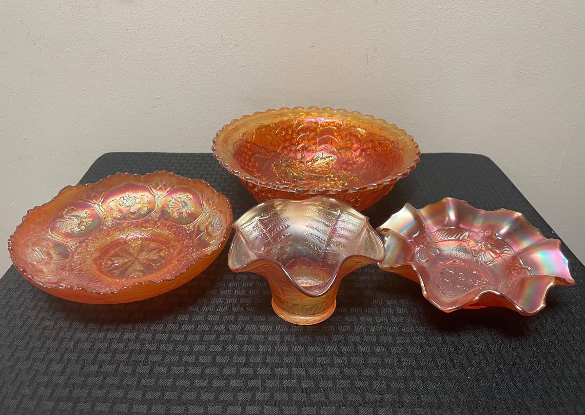 Vintage Marigold Orange Iridescent Carnival Glass Bowl Lot