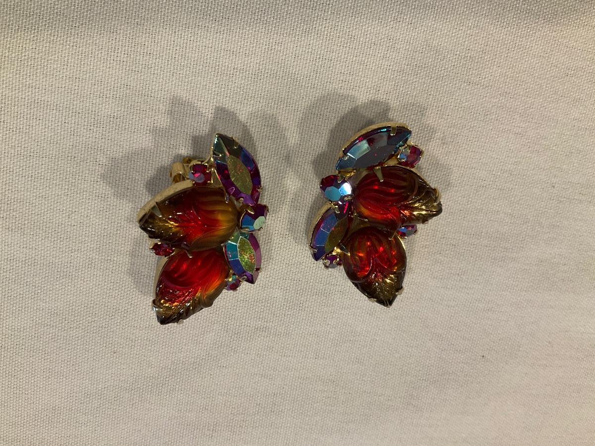 Vintage Orange Red Clip on earrings