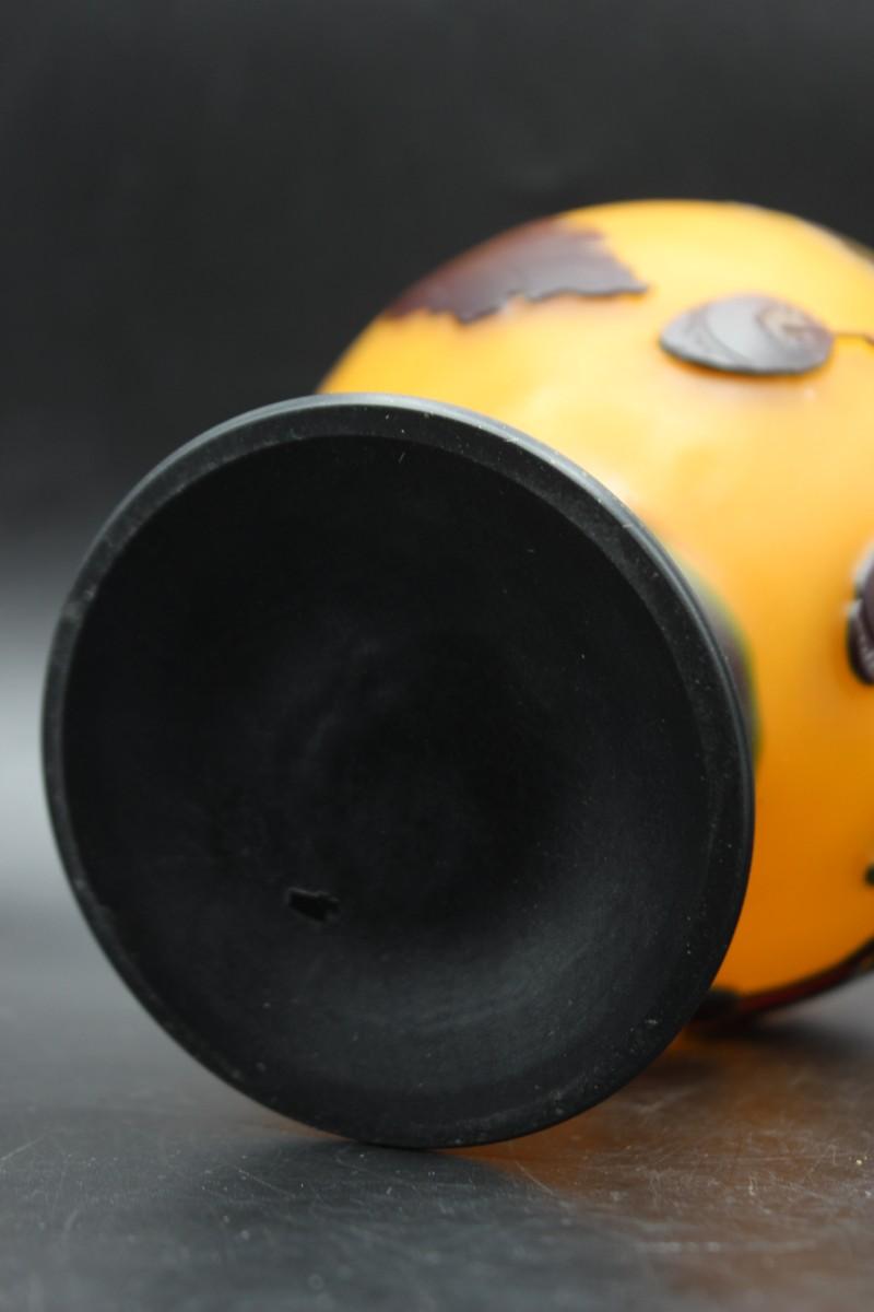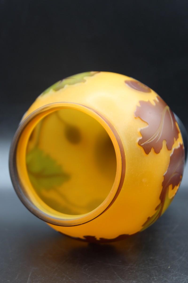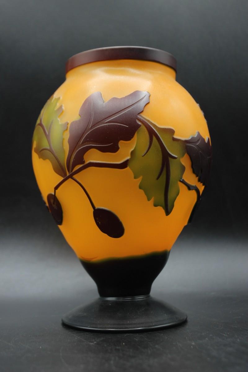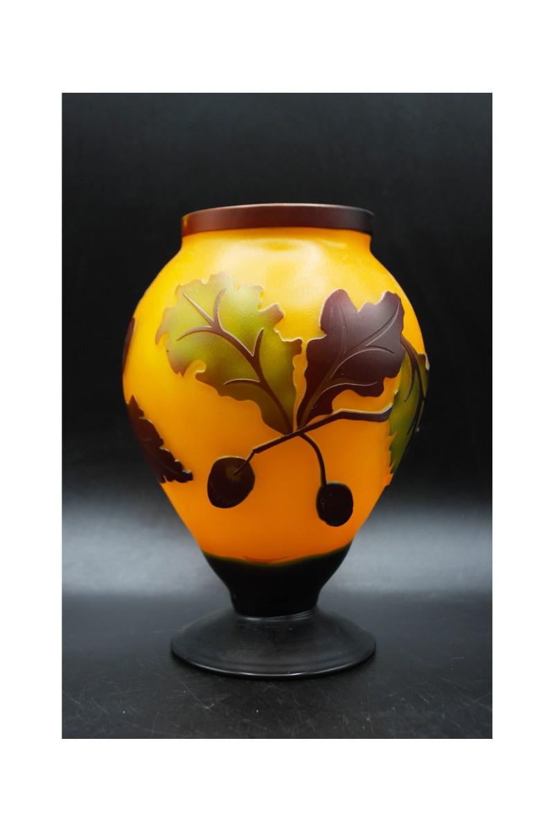 Vintage Orange Satin Glass Art Deco all Autumn Leaves and Acorns Cameo Vase, there are no significant cracks or chips to the piece and is in good vintage condition. Check pictures for more details and for sizing.