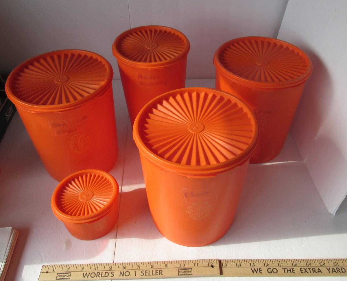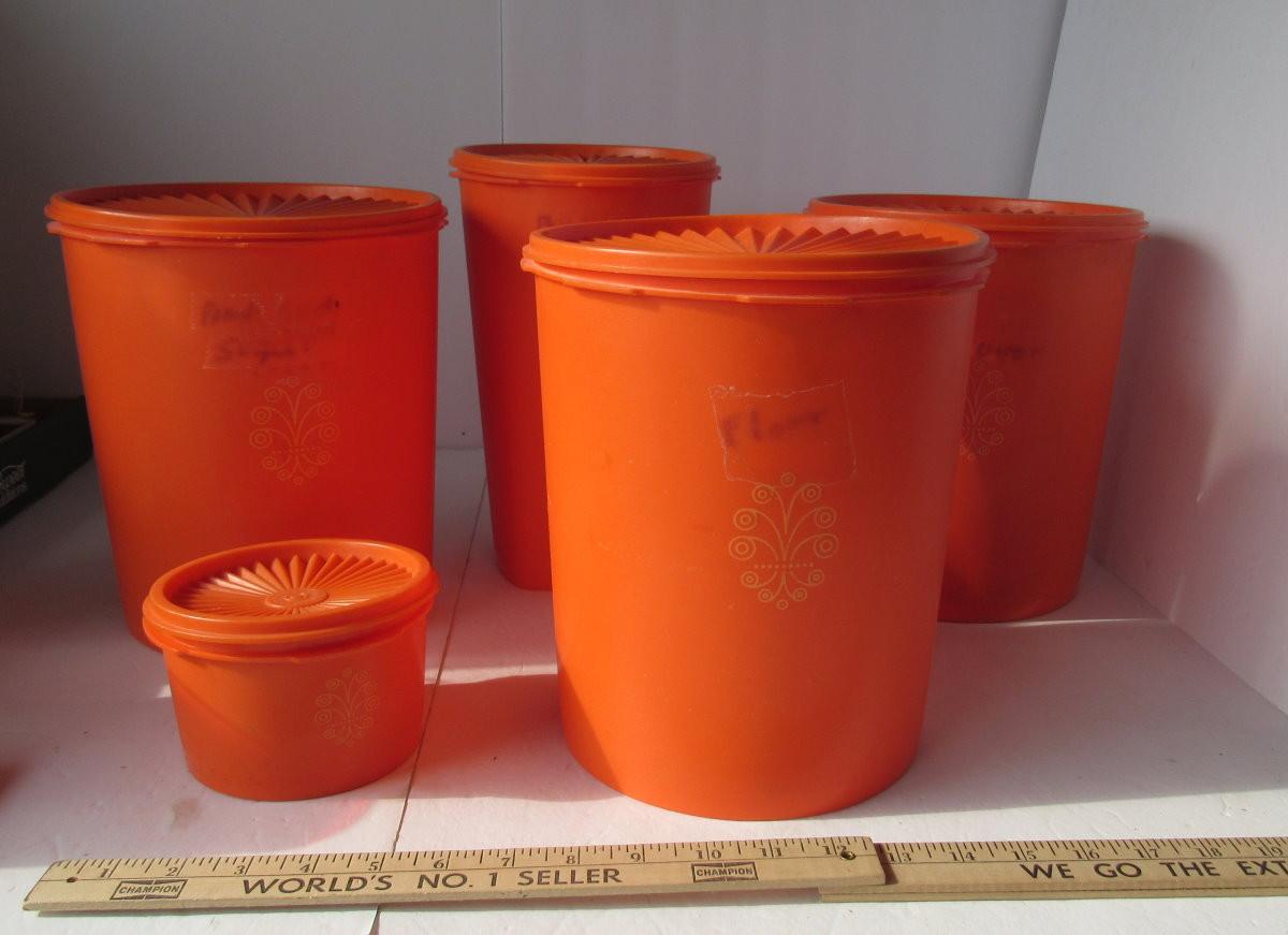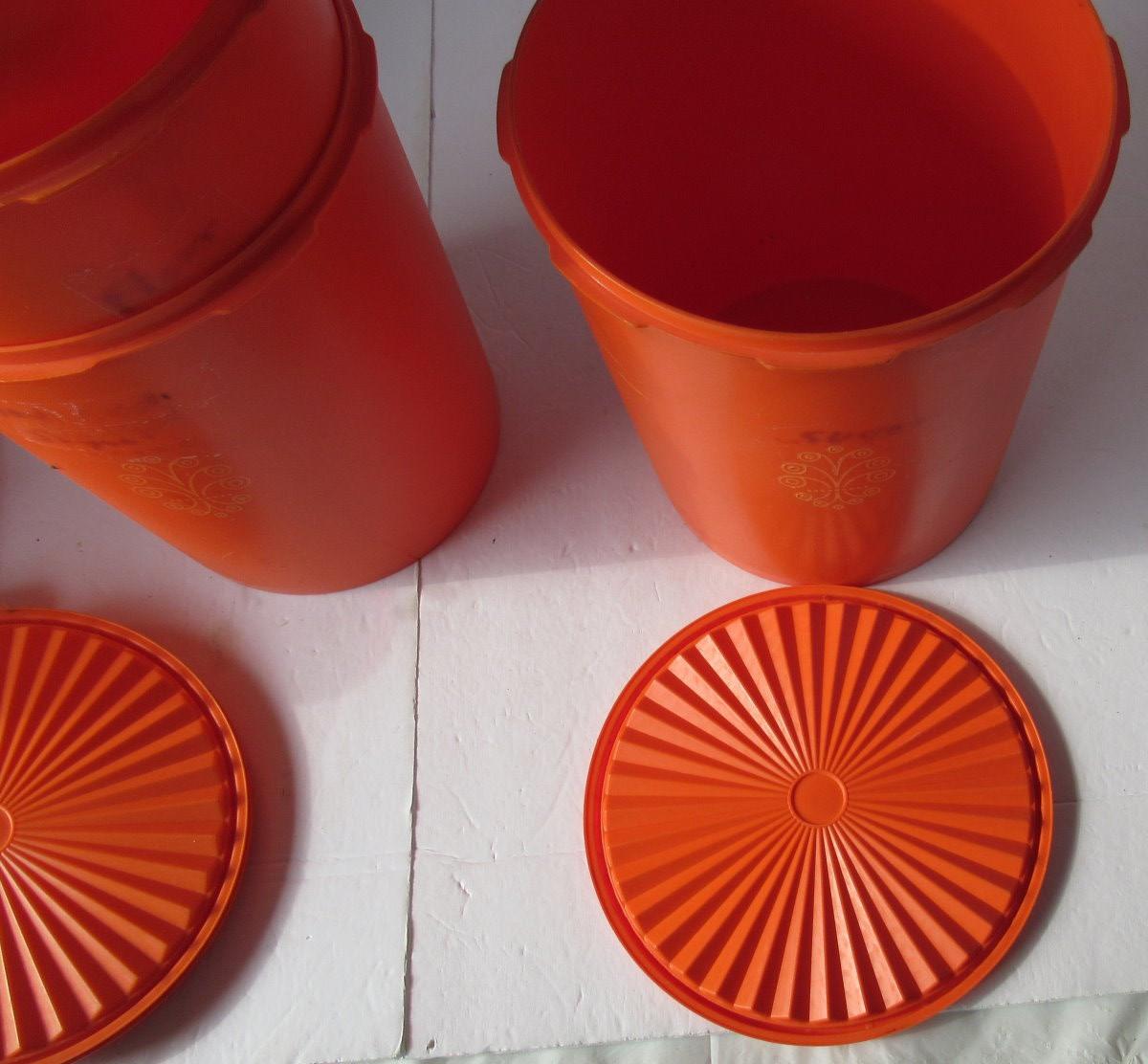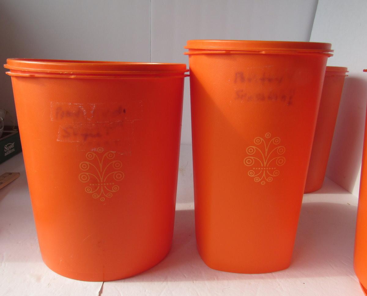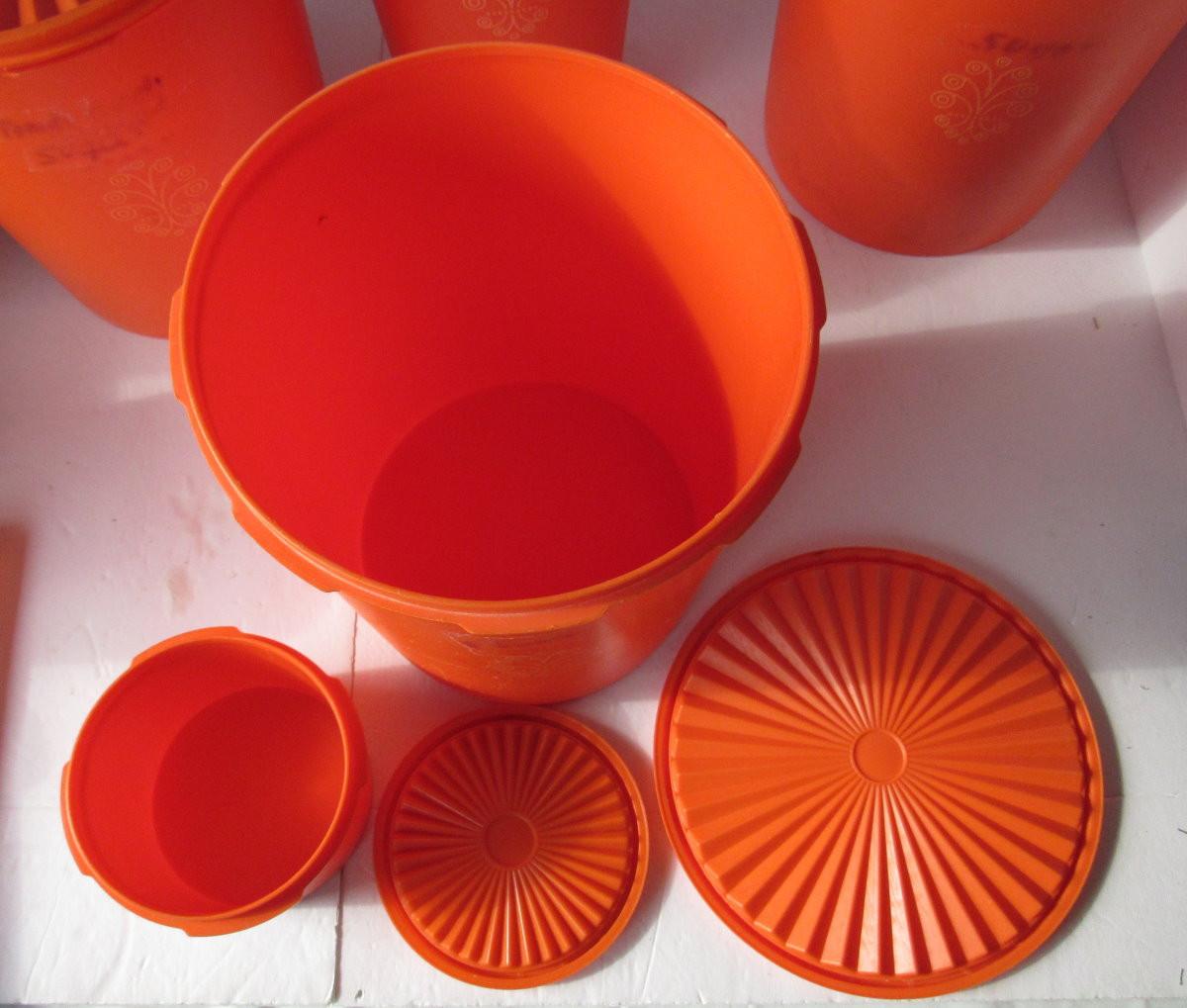 Vintage Orange Tupperware Canister Set With Covers, Read Description