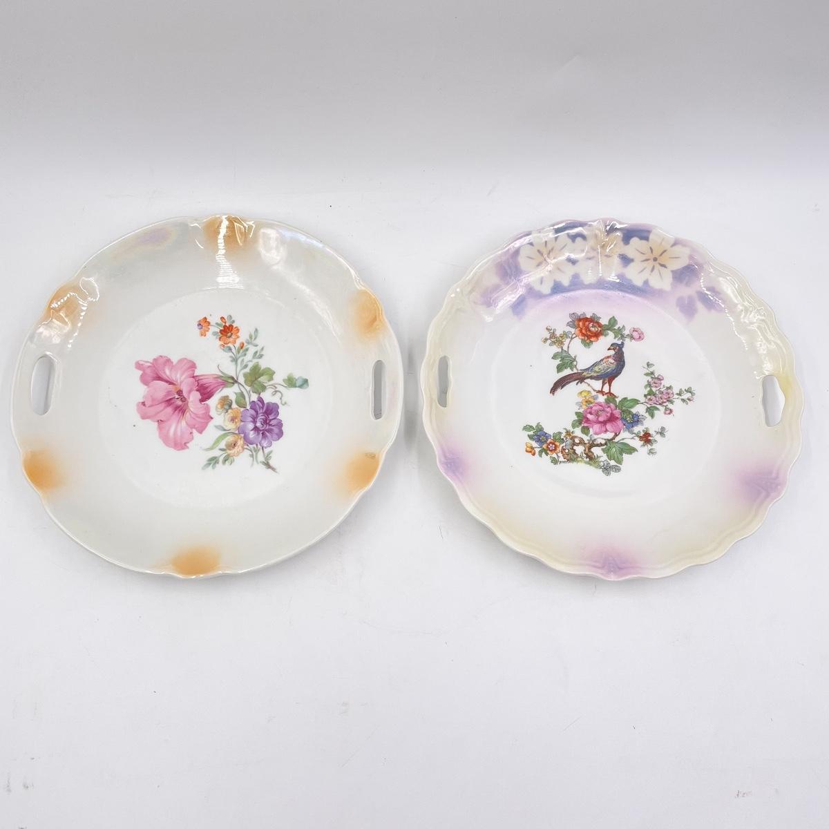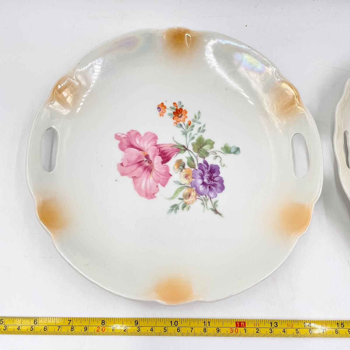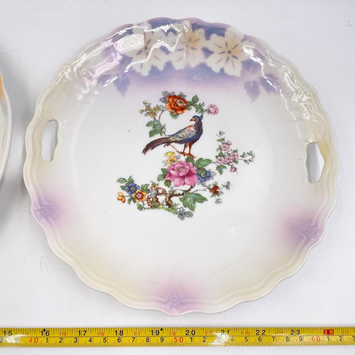 VINTAGE OREMONT BAVARIA 9.5” PEACOCK & HIBISCUS DECORATIVE CHINA PLATES
