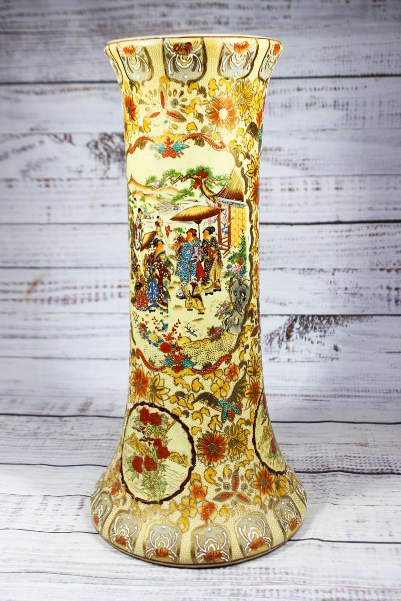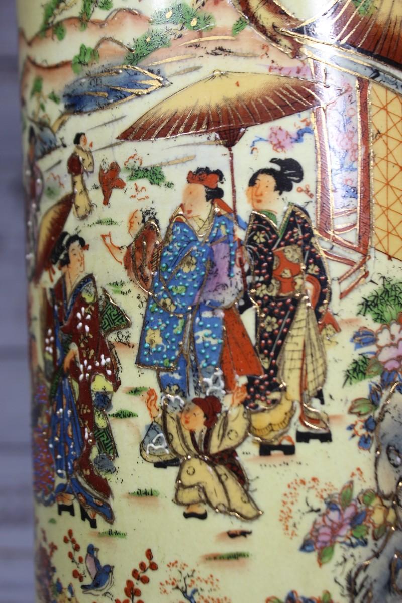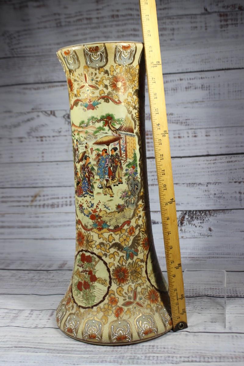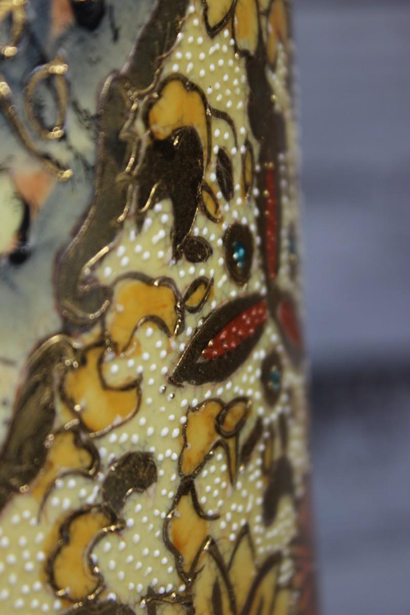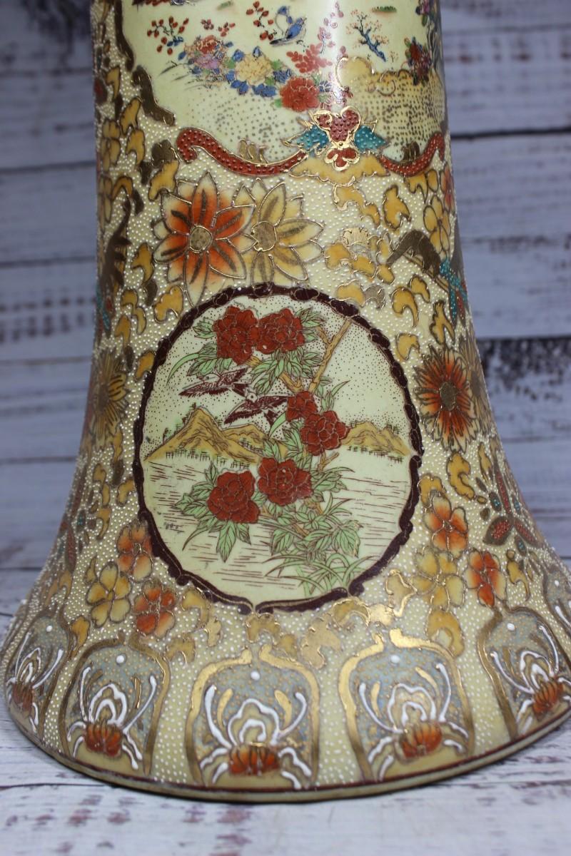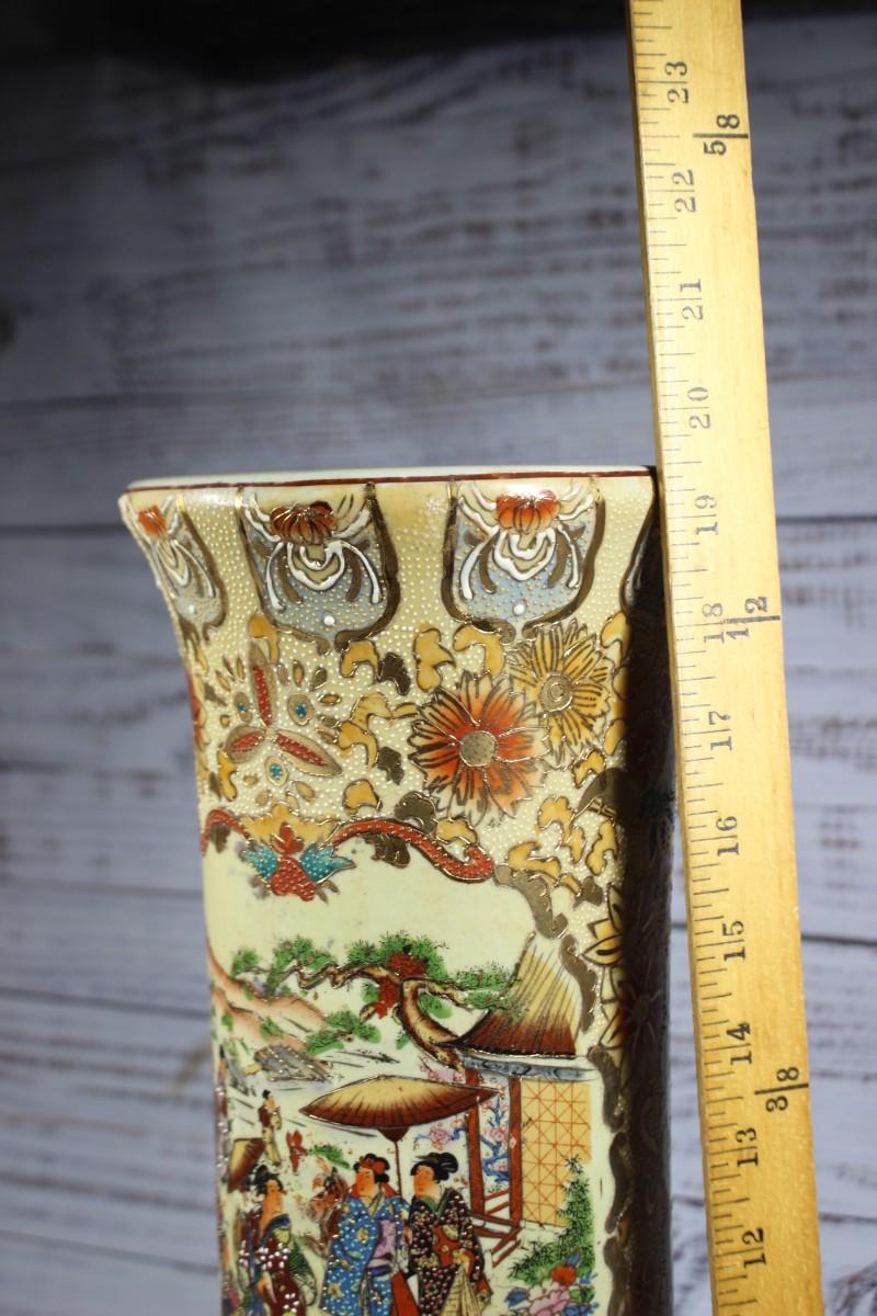 Vintage Oriental Ceramic Moriage Style Pottery Beaker Display Vase, there is no significant cracks or chips to the piece and is in good vintage condition. Check pictures for more details and for sizing.