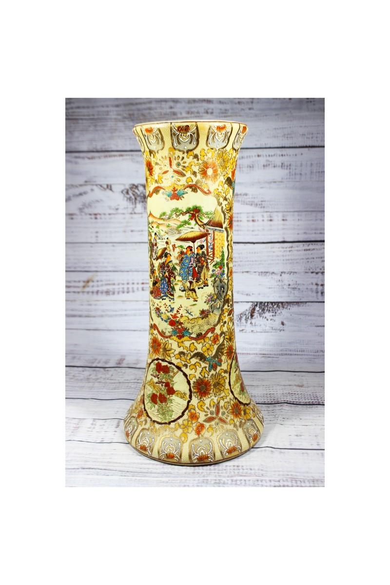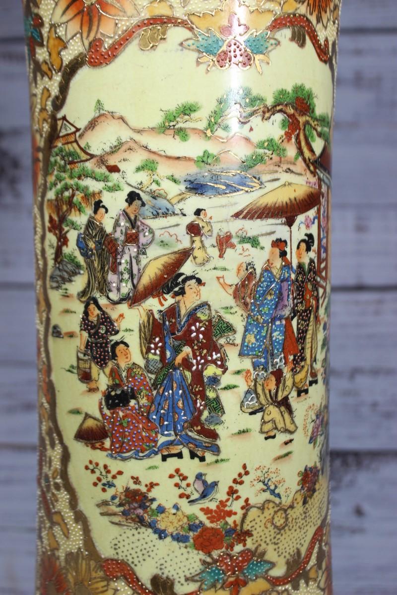 Vintage Oriental Ceramic Moriage Style Pottery Beaker Display Vase