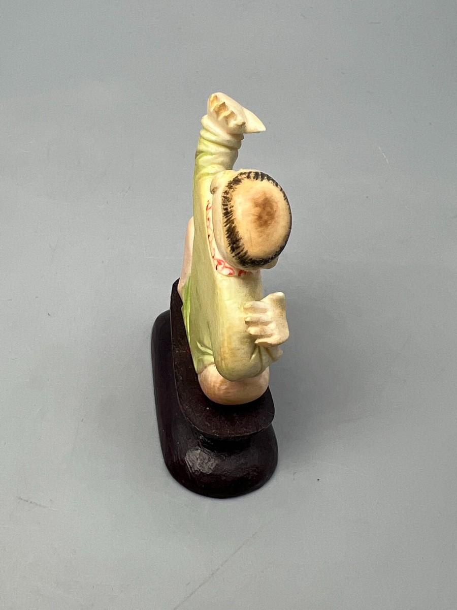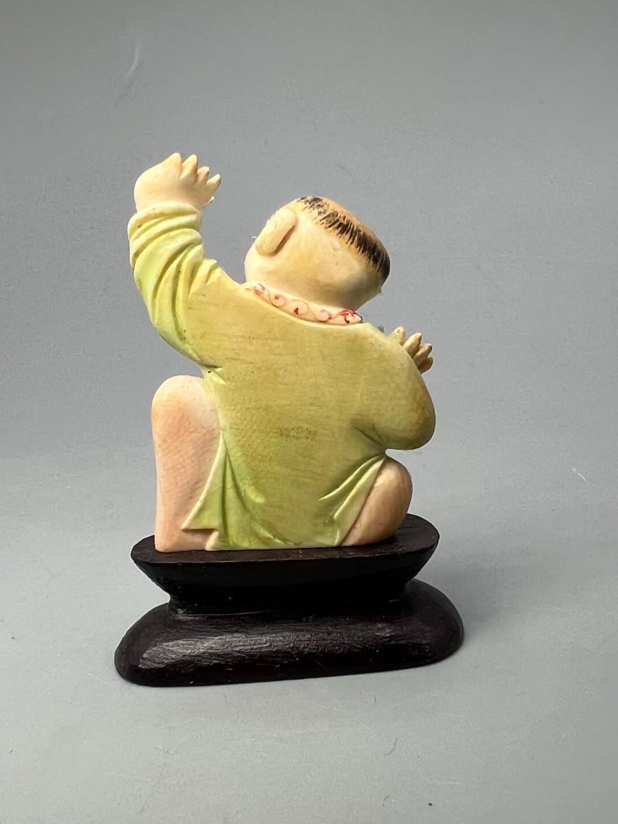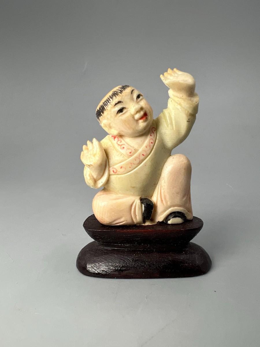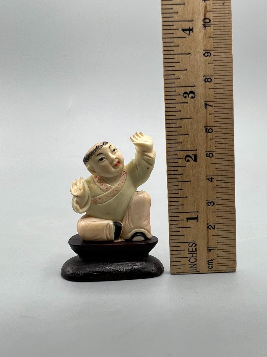 Vintage Oriental Child Small Figurine with Wooden Stand