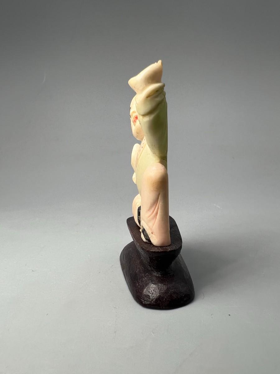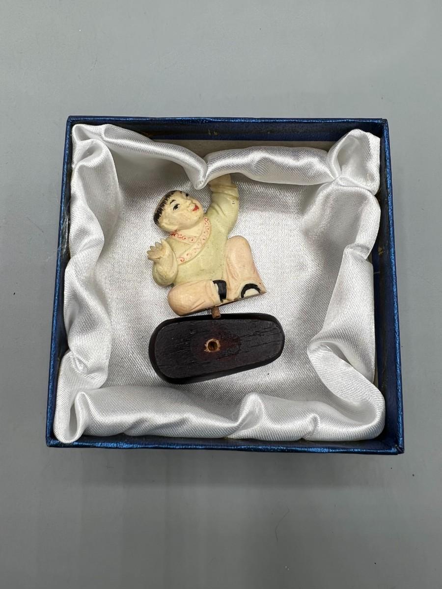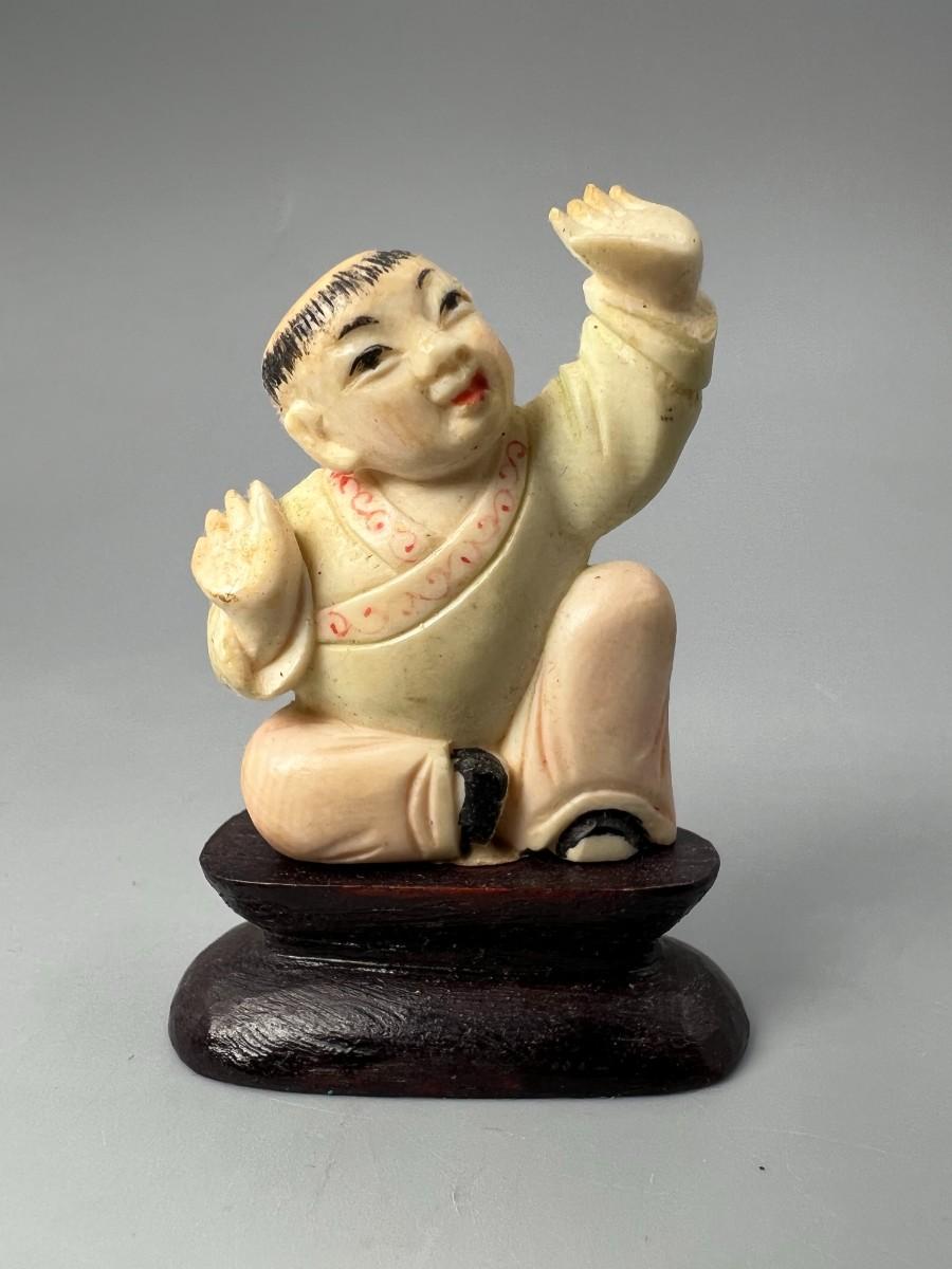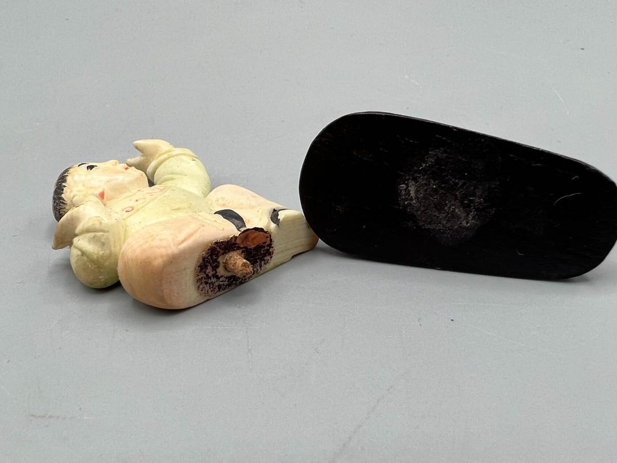 Vintage Oriental Child Small Figurine with Wooden Stand