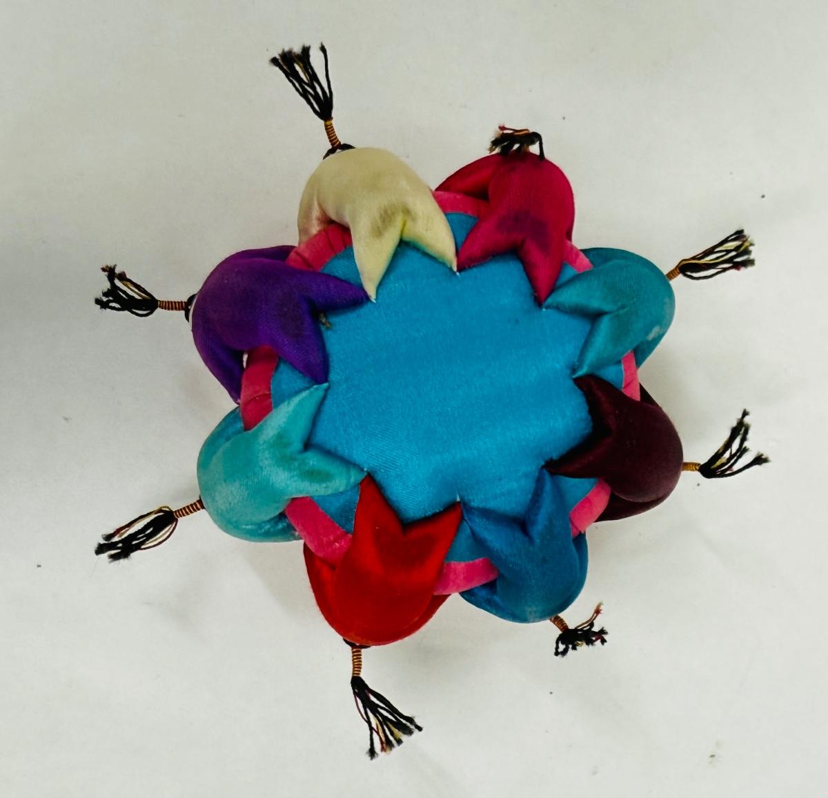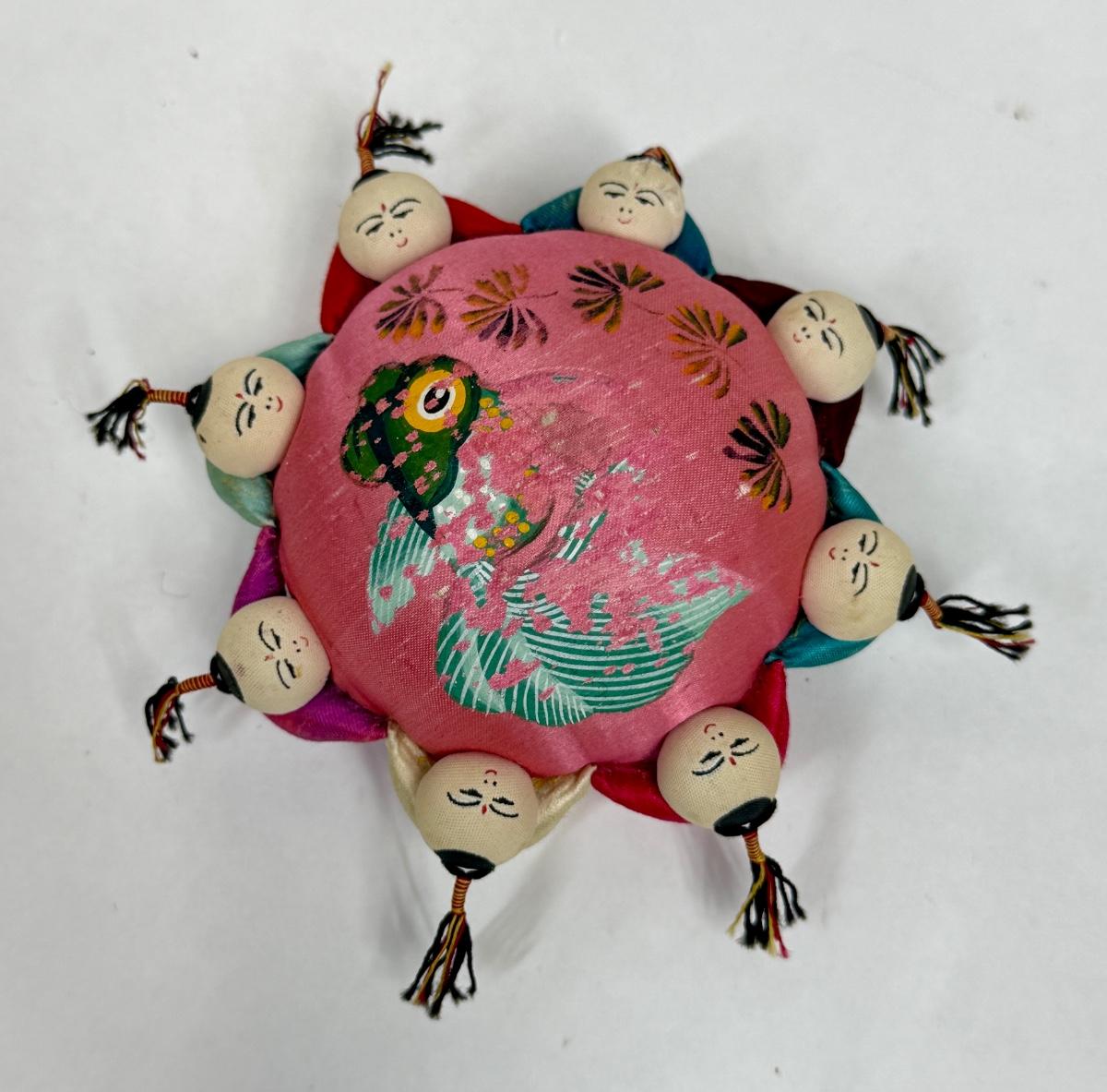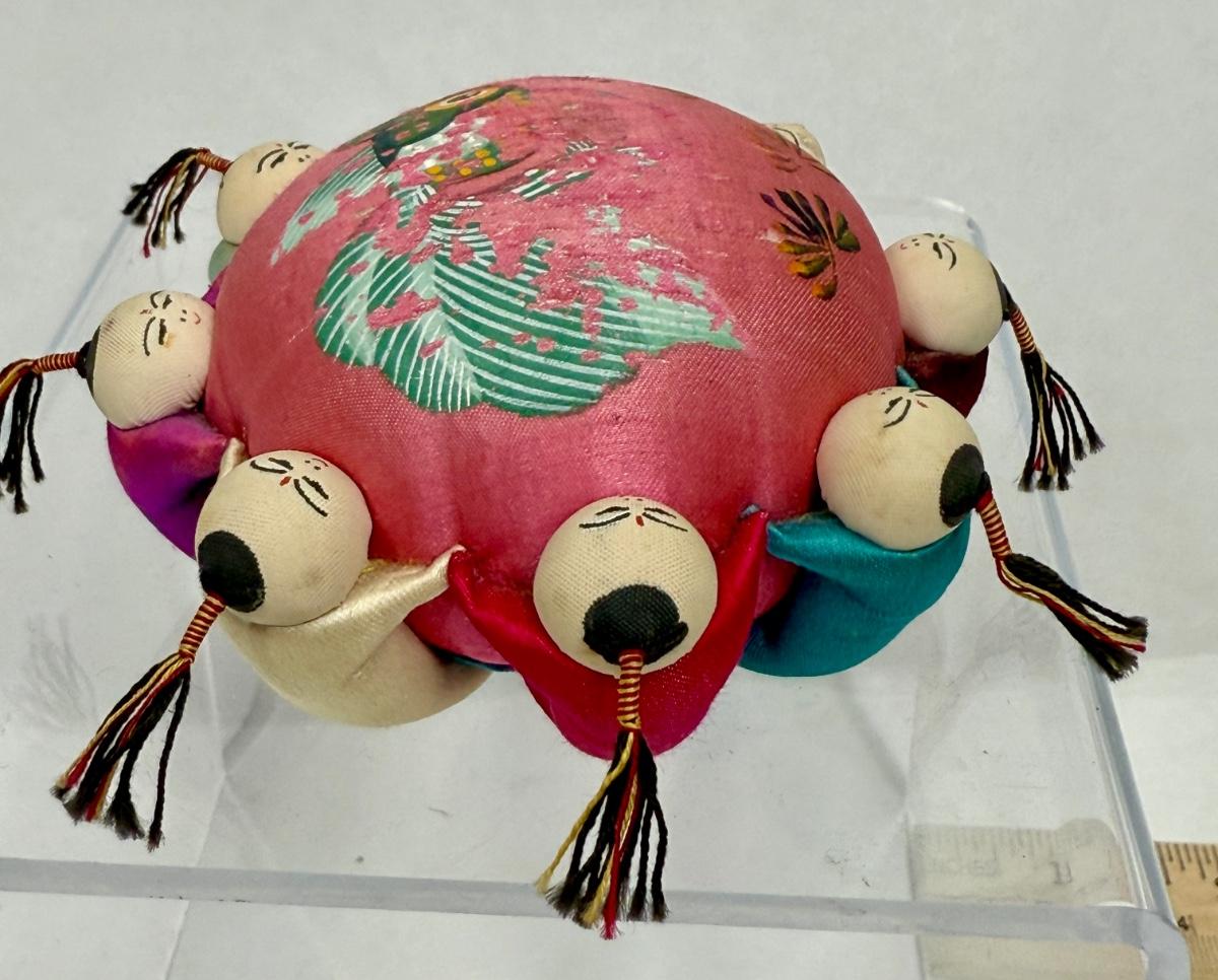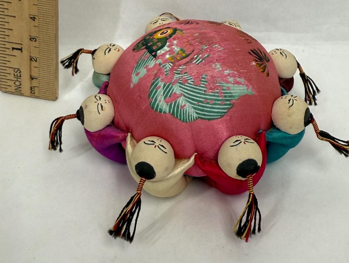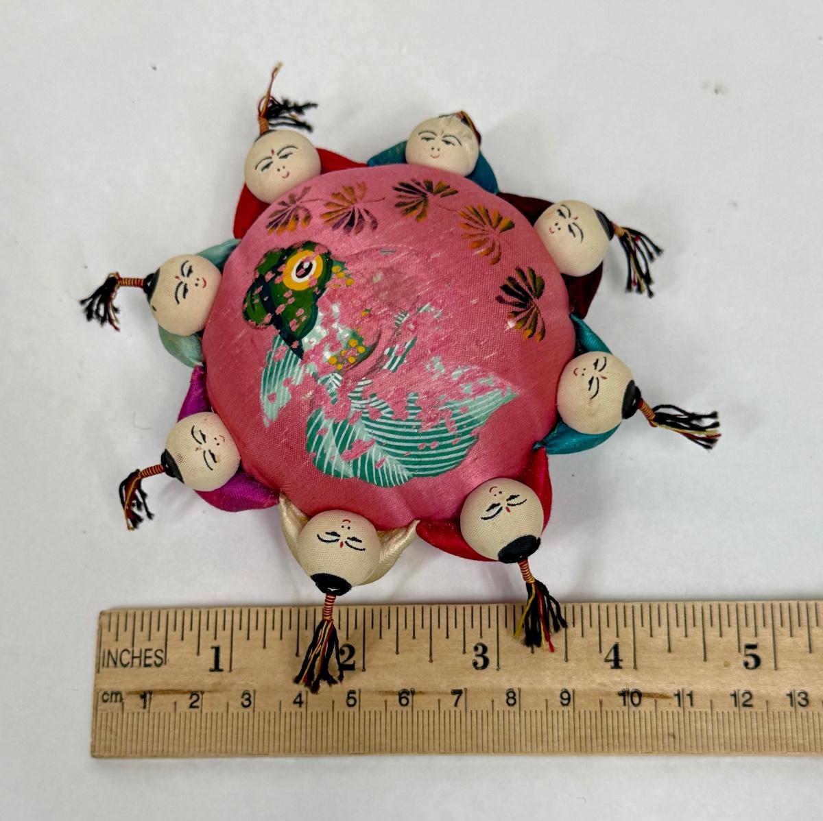 Vintage Oriental Chinese Asian Round Silk Pin Cushion w8 Dolls Figurines