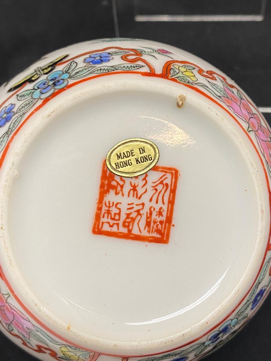 Vintage Oriental Made in Hong Kong Floral Porcelain Decorative Vase, there are no significant cracks or chips to the vase and is in good displayable and collectible condition. Check pictures for more details and for sizing. The bottom is stamped with the maker's mark.